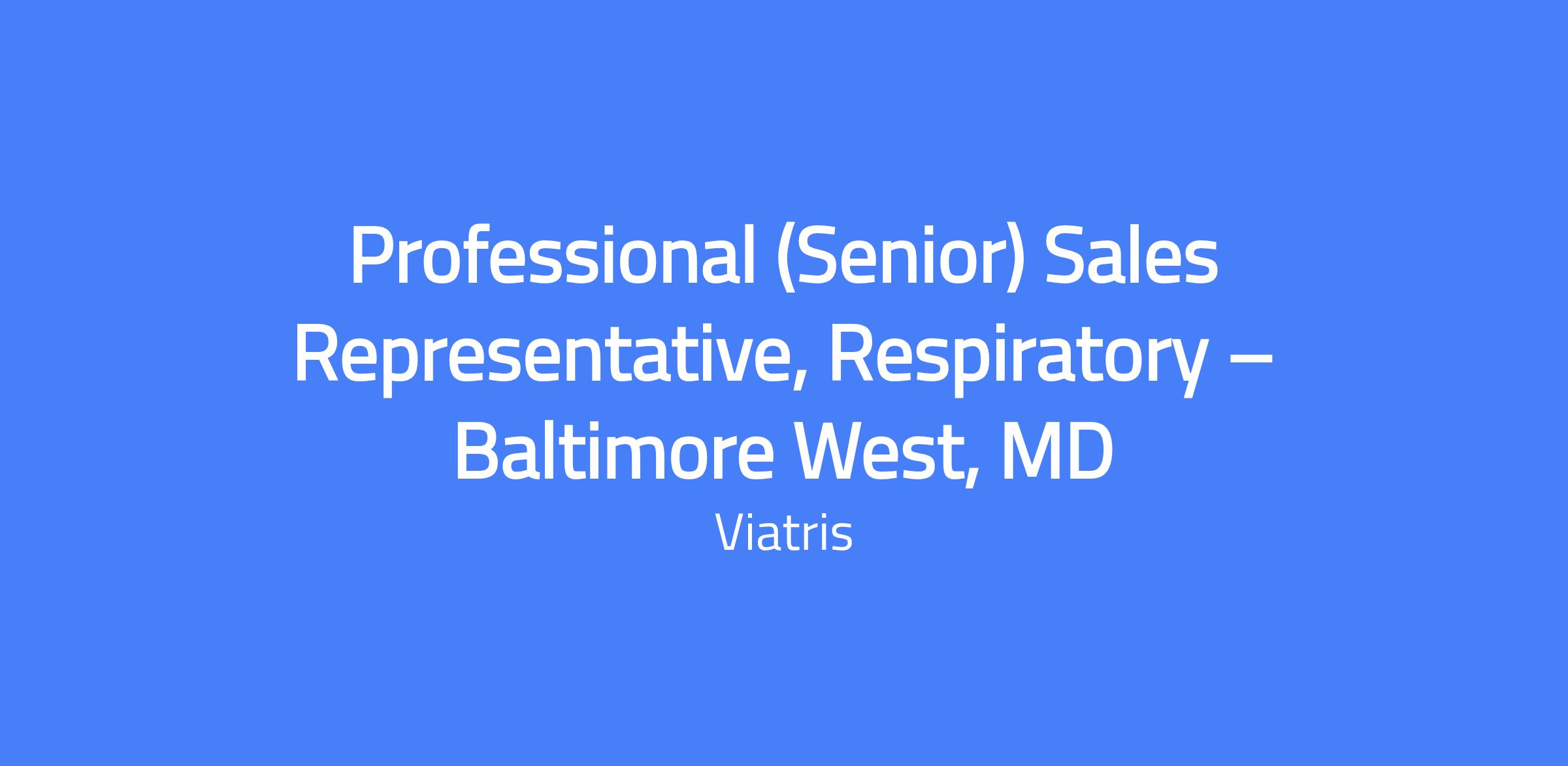 Professional (Senior) Sales Representative, Respiratory β Baltimore West, MD