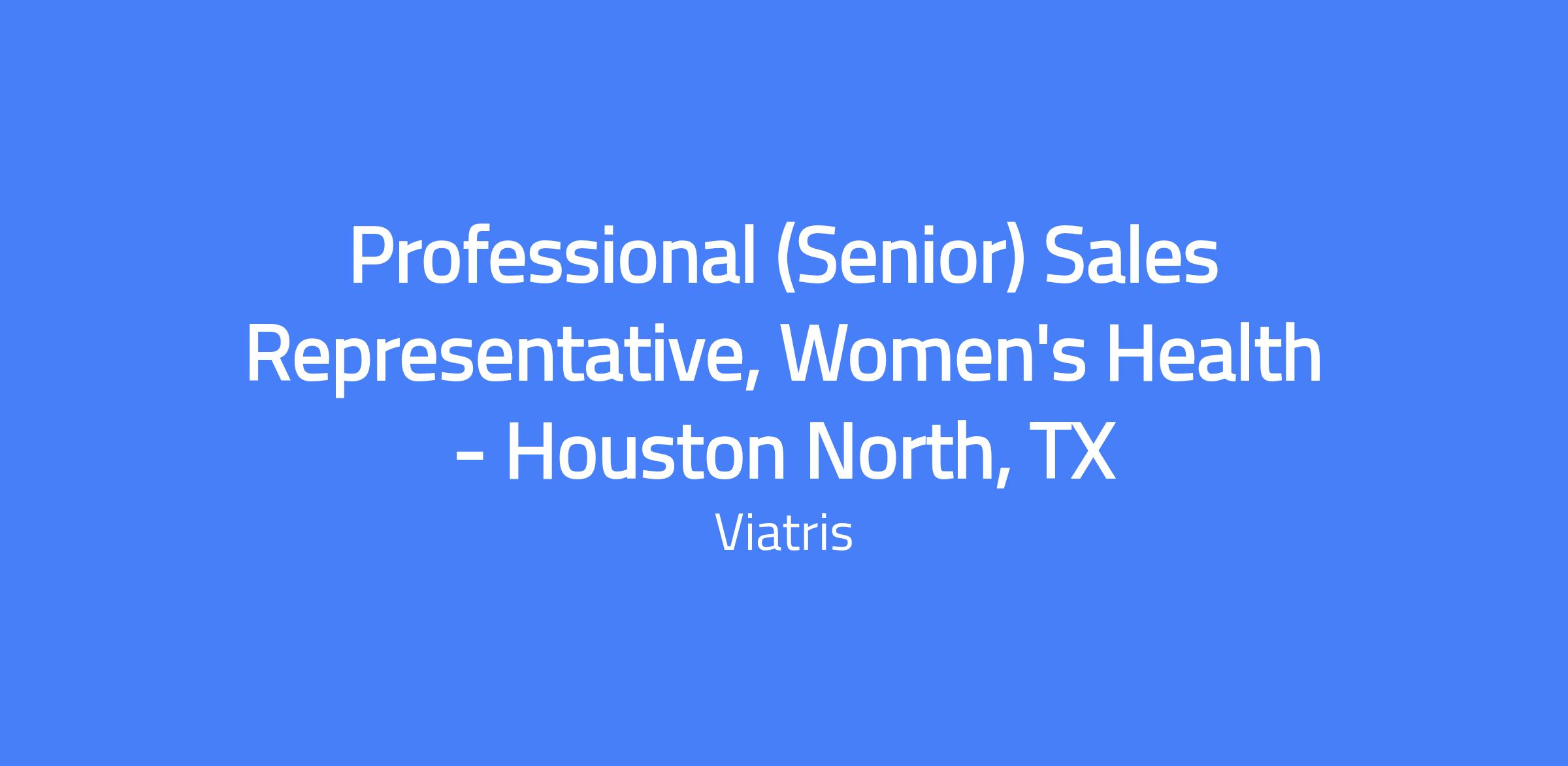 The Senior Professional Sales Representative, Women's Health, Houston North, TX drives Viatris growth in the assigned territory. You will develop territory plans aligned with sales strategies, conduct quality presentations to targeted customers, and achieve quarterly sales goals while upholding ethical standards. You will build proactive relationships with prescribers, offices, pharmacists, and internal partners, and continuously develop product knowledge and selling skills.