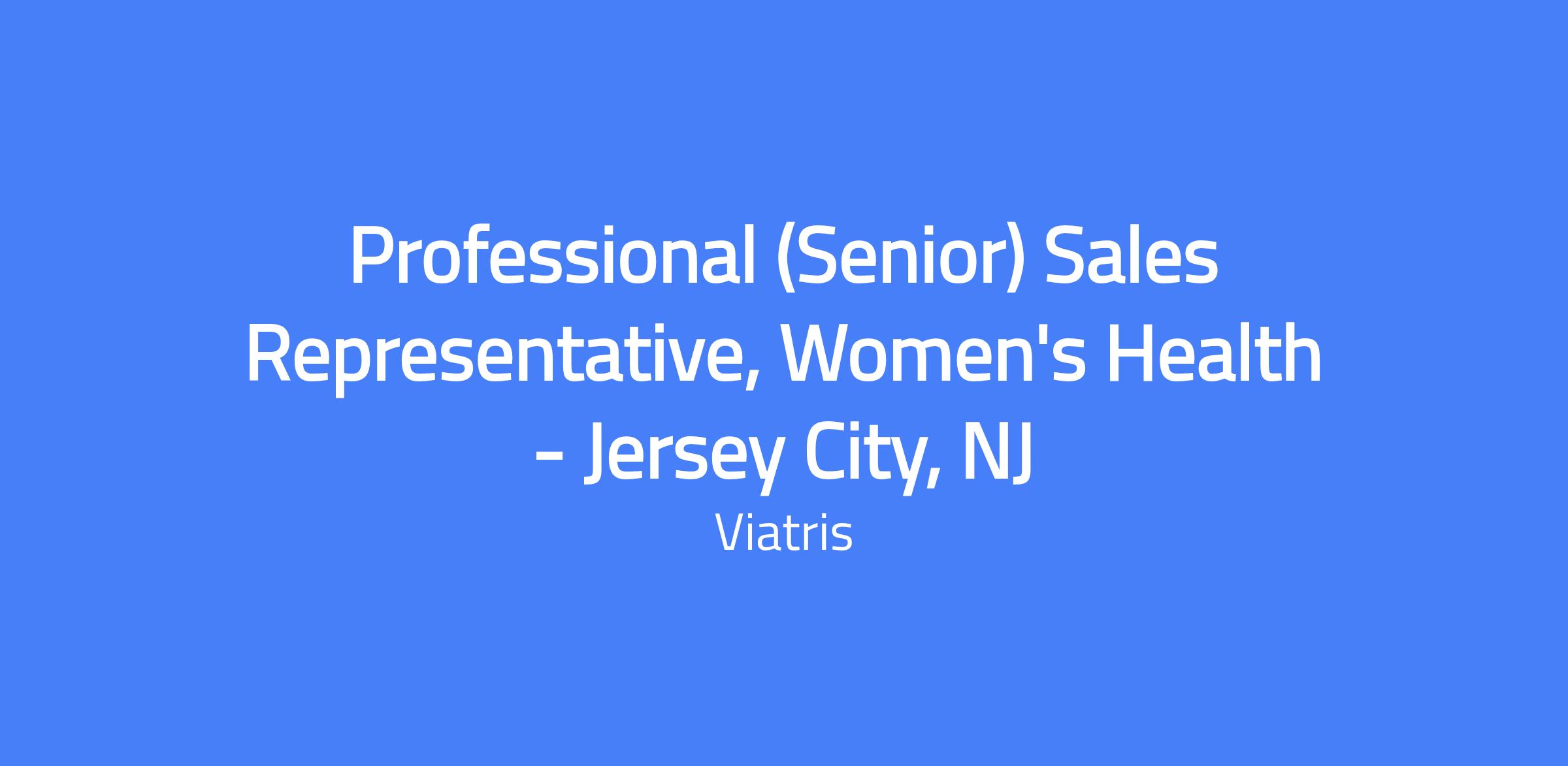 The Professional (Senior) Sales Representative, Women's Health โ Jersey City, NJ drives territory sales for Viatris Women's Health products. You will develop territory business plans aligned with Viatris sales strategies, conduct quality sales presentations to targeted customers, and achieve quarterly sales goals while adhering to ethical practices and required regulations. You will build positive relationships with peers, customers, and Company managers, and you will leverage sample programs, literature and other materials to raise physician awareness of Viatris products. Travel within the territory may be required; you must reside in the territory.