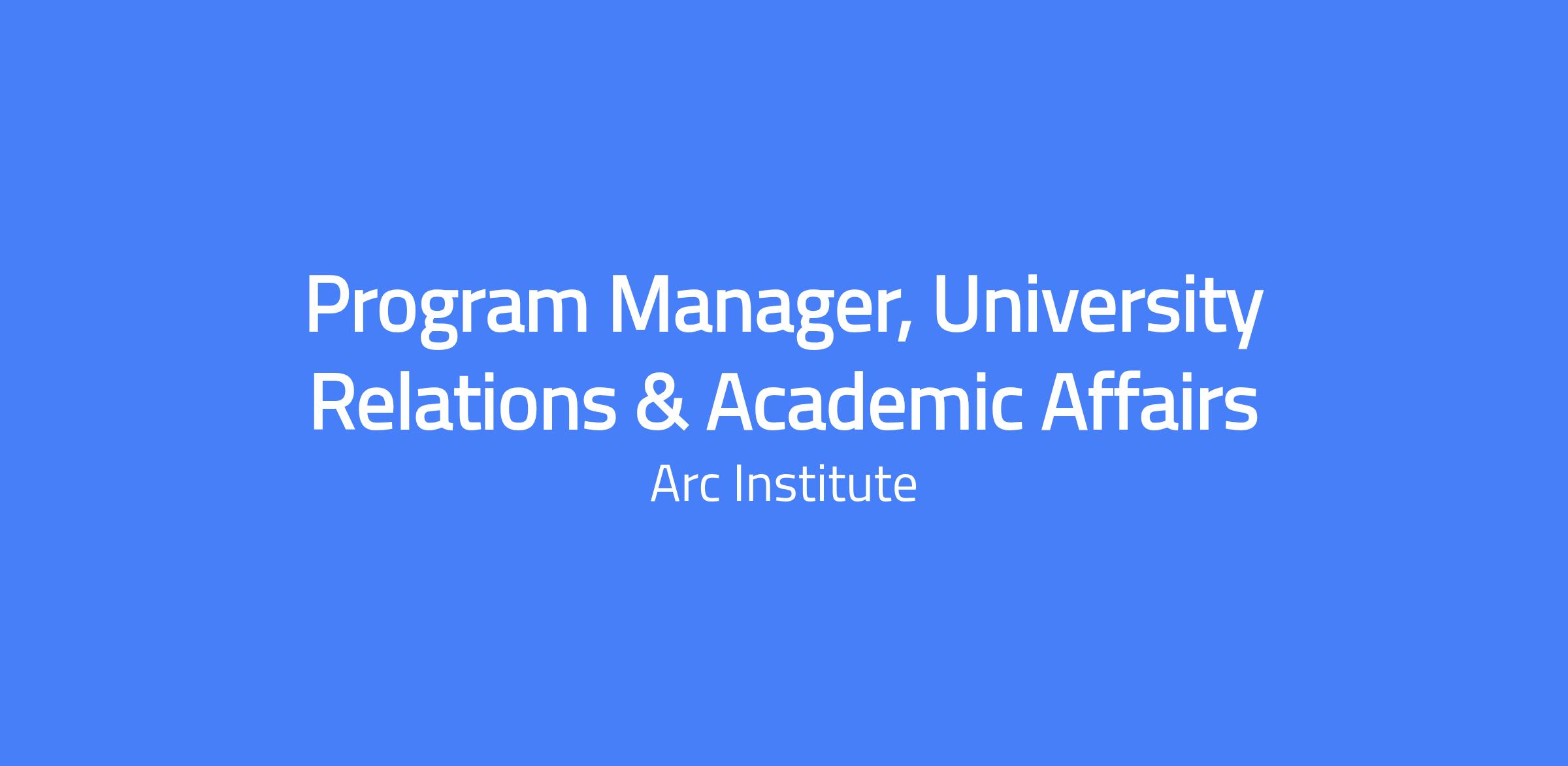 The Program Manager is a key member of the University Relations & Academic Affairs team. In this role, you will provide strategic and programmatic support to the team as well as the overall Arc community. The Program Manager portfolio includes Arc’s Innovation Investigator and Ignite Awardee programs, the Arc Biosciences Fellowship program, onboarding of new faculty, as well as other initiatives. The Program Manager will also have an active role in the development and execution of our university relations strategy.Â