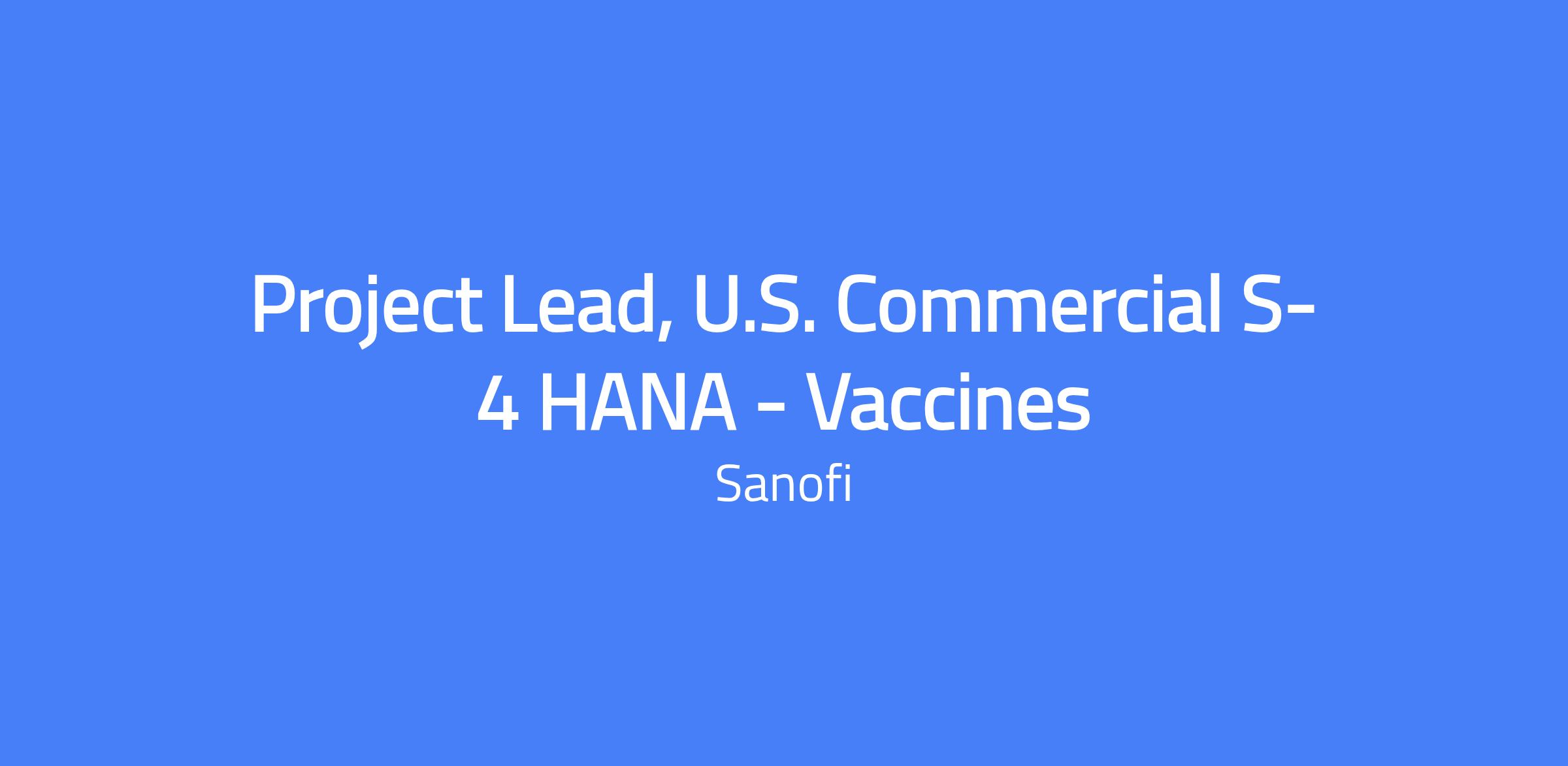 Project Lead, U.S. Commercial S-4 HANA - Vaccines