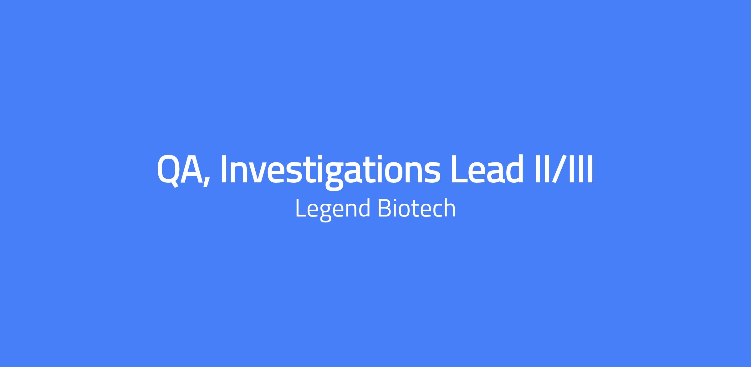 The QA Investigation Lead (exempt) provides quality oversight and guidance during investigations of events occurring in the production of a personalized cell therapy product in a sterile GMP environment.