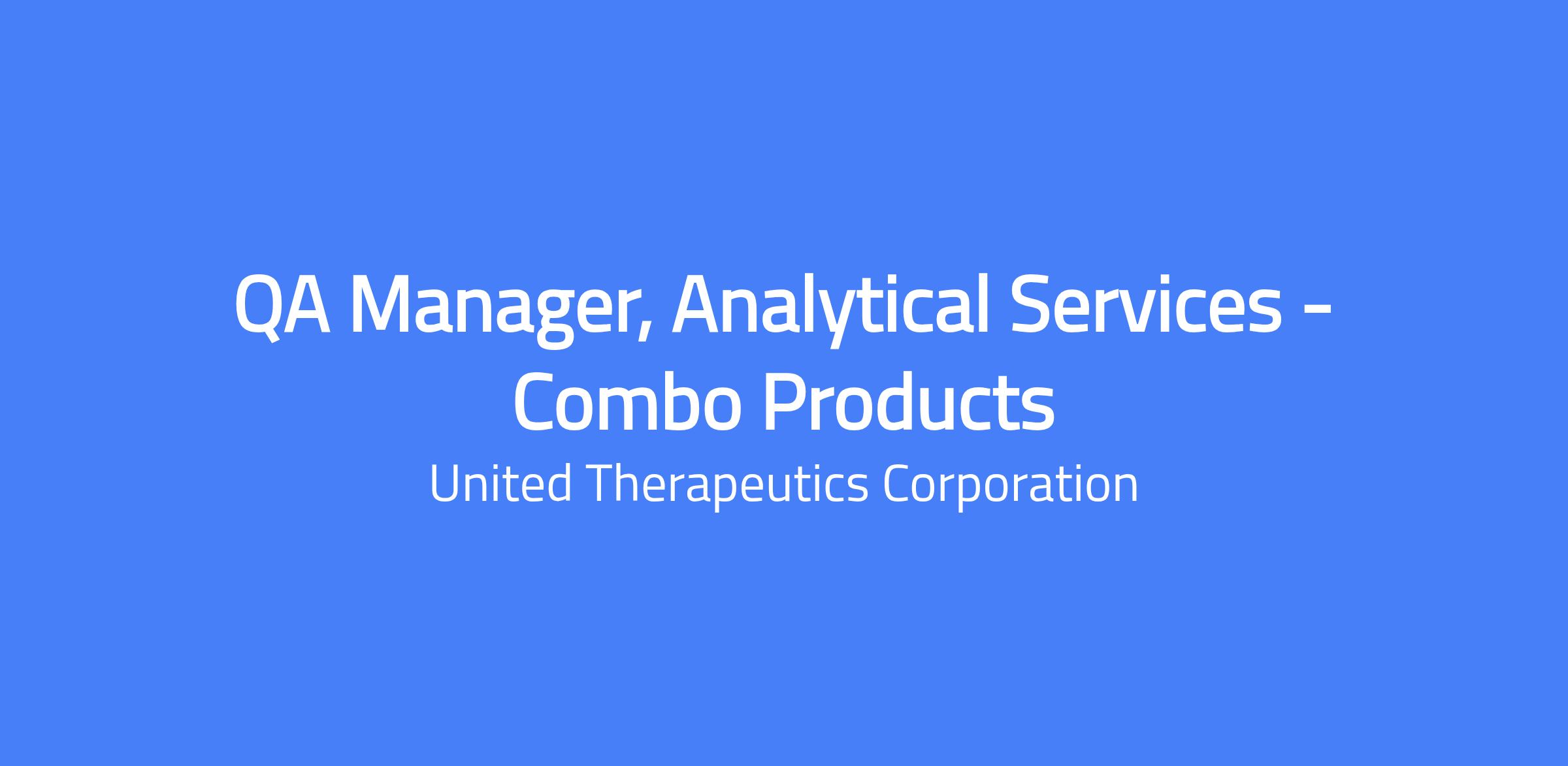 Role: QA Manager, Analytical Services - Combo Products. Location: Durham, NC (on-site). This role focuses on creating processes to support combination product quality control testing. You will be part of a greenfield project standing up a new Quality Assurance team, troubleshoot, and make fast but accurate decisions while ensuring timely and accurate quality oversight for QC chemistry and microbiological testing of materials and UTC combination products. You will provide oversight and guidance on day-to-day activities of scientists in the Combination Products QC laboratory and serve as an internal technical expert for Quality Assurance activities.