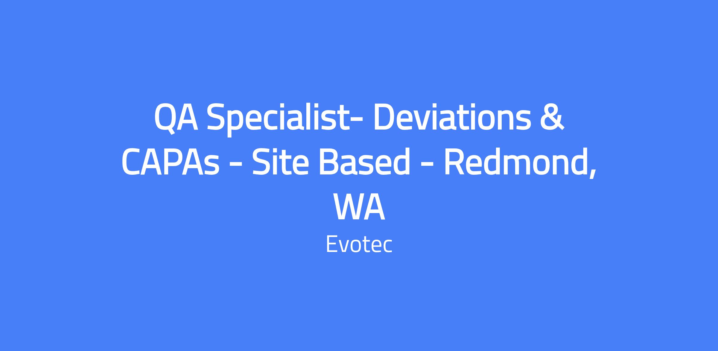 The QA Specialist will execute day-to-day QA responsibilities for GMP manufacturing and contribute to building and enhancing the quality assurance systems. The role works independently and collaboratively with Manufacturing, Quality, and Facilities to ensure compliance with cGMPs and internal procedures. Location: Redmond, WA; limited travel to Seattle site. Shifts: Days, Monday–Friday, 8am–5pm core hours.