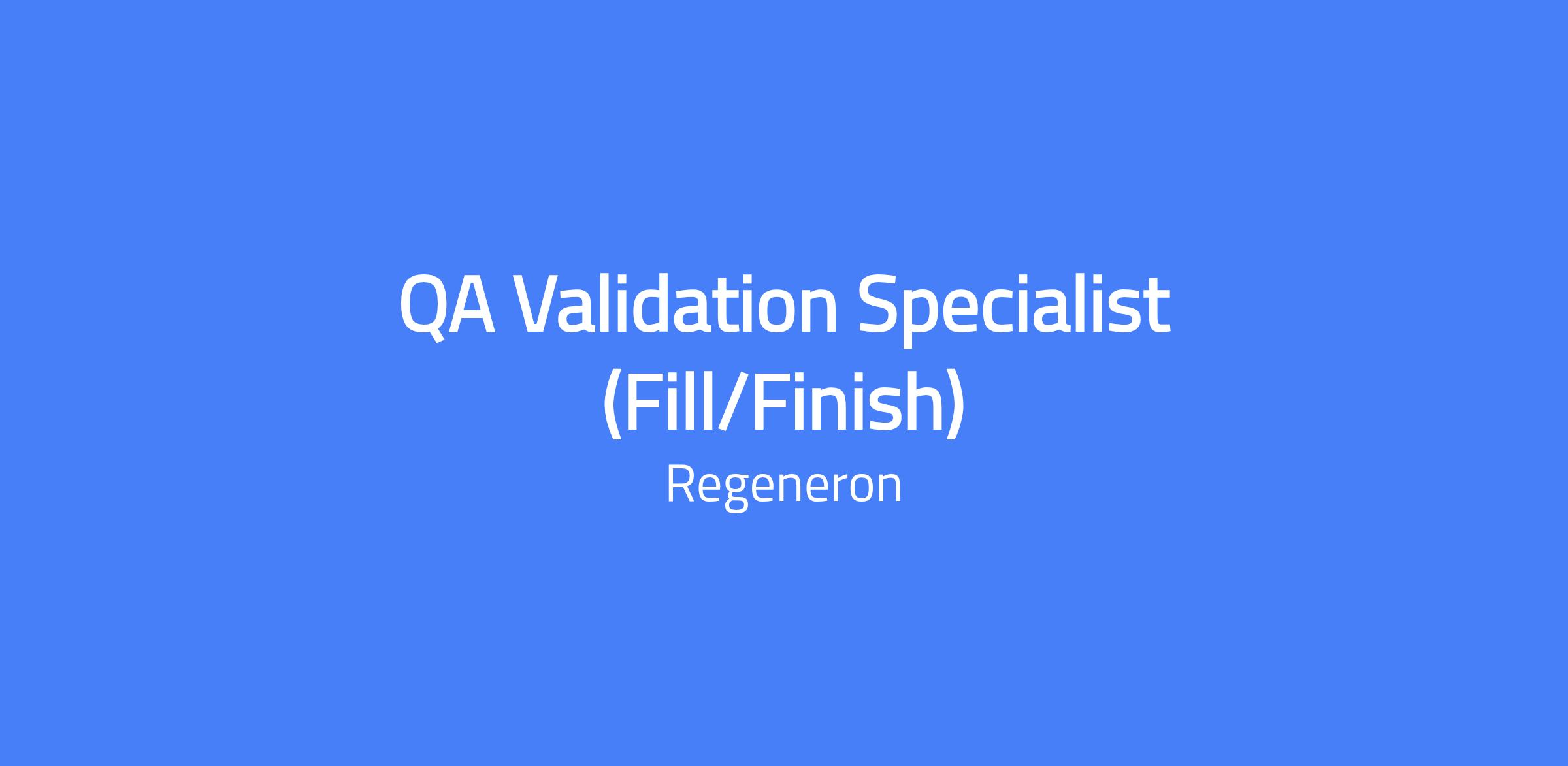 QA Validation Specialist (Fill/Finish). Our Fill Finish QA Validation team is hiring. As the QA Validation Specialist, you will ensure equipment, systems, and processes meet regulatory standards while adhering to company manufacturing policies and procedures. This role will support our Fill Finish facility in Rensselaer, NY.