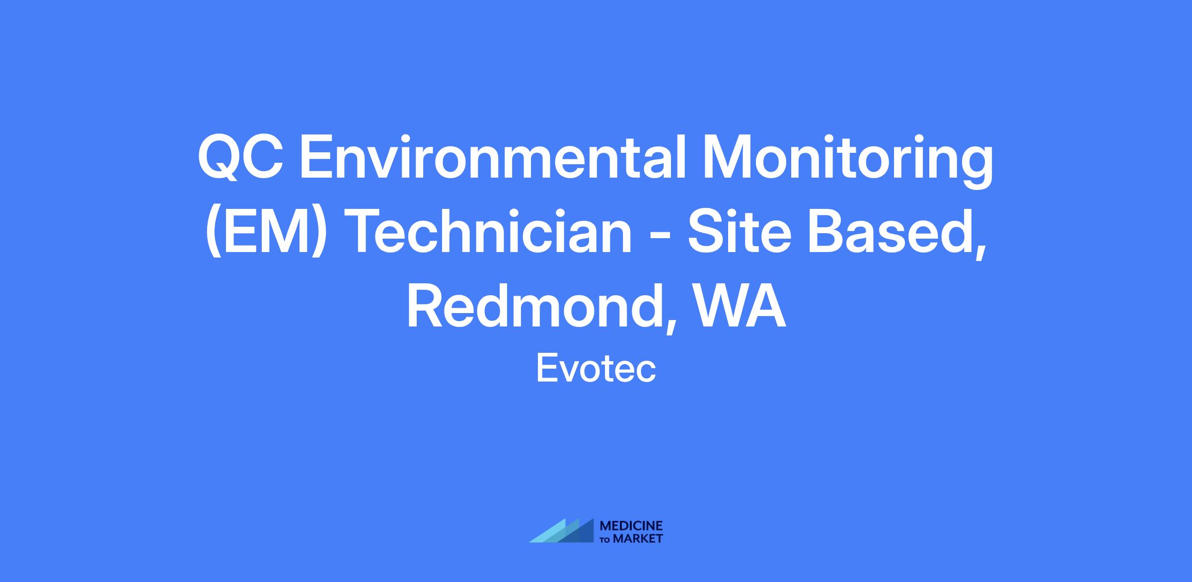 QC-Environmental Monitoring Technician at site-based Redmond, WA. Responsible for routine sampling of facility water, air, and surfaces in controlled environments, including ISO classified cleanrooms, supporting GMP manufacturing activities. Travel between Redmond and Seattle facilities as applicable.