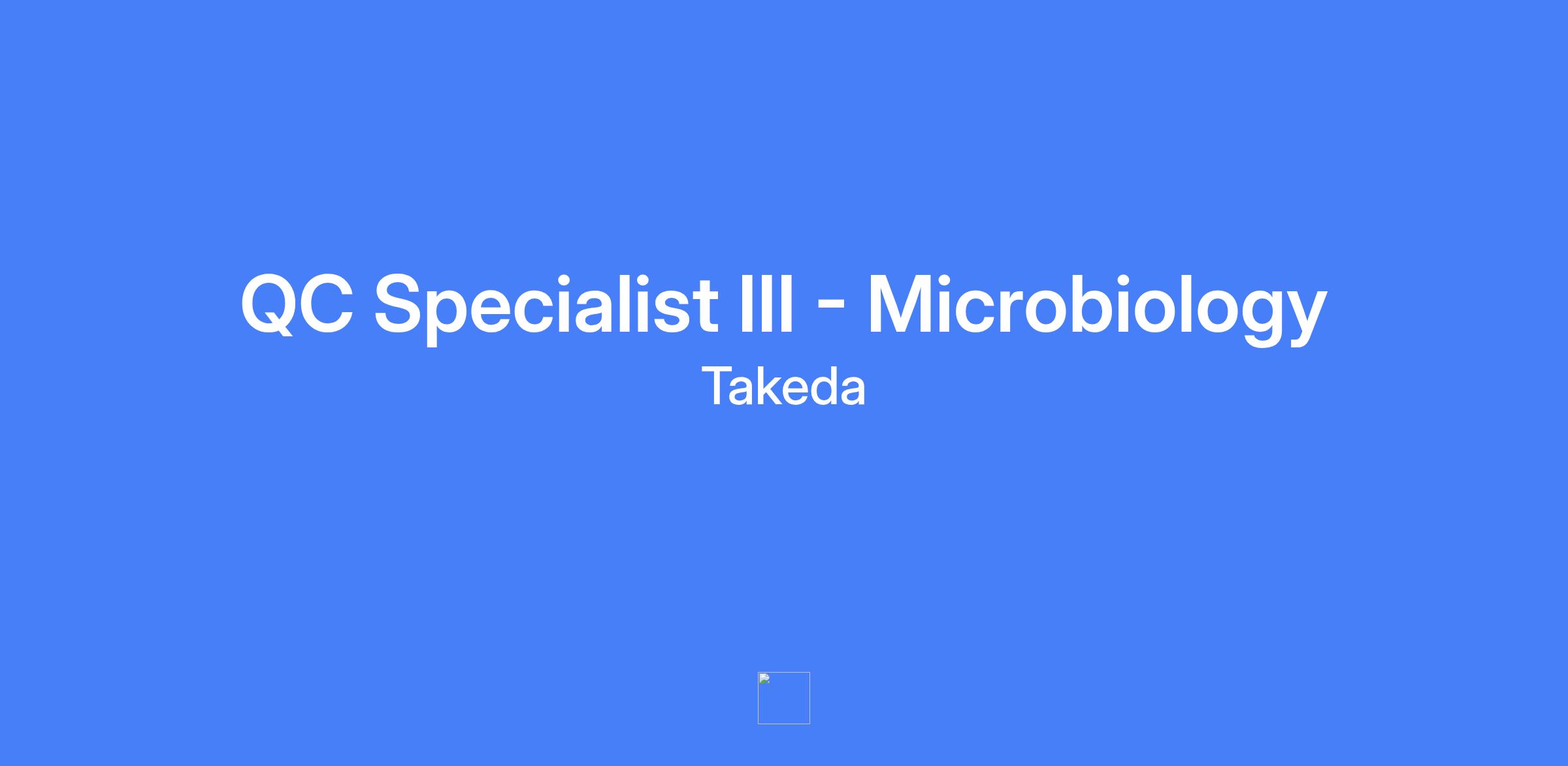 QC Specialist III - Microbiology — Conduct advanced microbiological research and testing to support QC Micro projects. This role involves equipment qualification, partnership in the development of and validation of Microbiology methodologies, analyzing complex data, and ensuring compliance with regulatory standards. Self-led individual that works under only very general supervision to meet deadlines/goals.