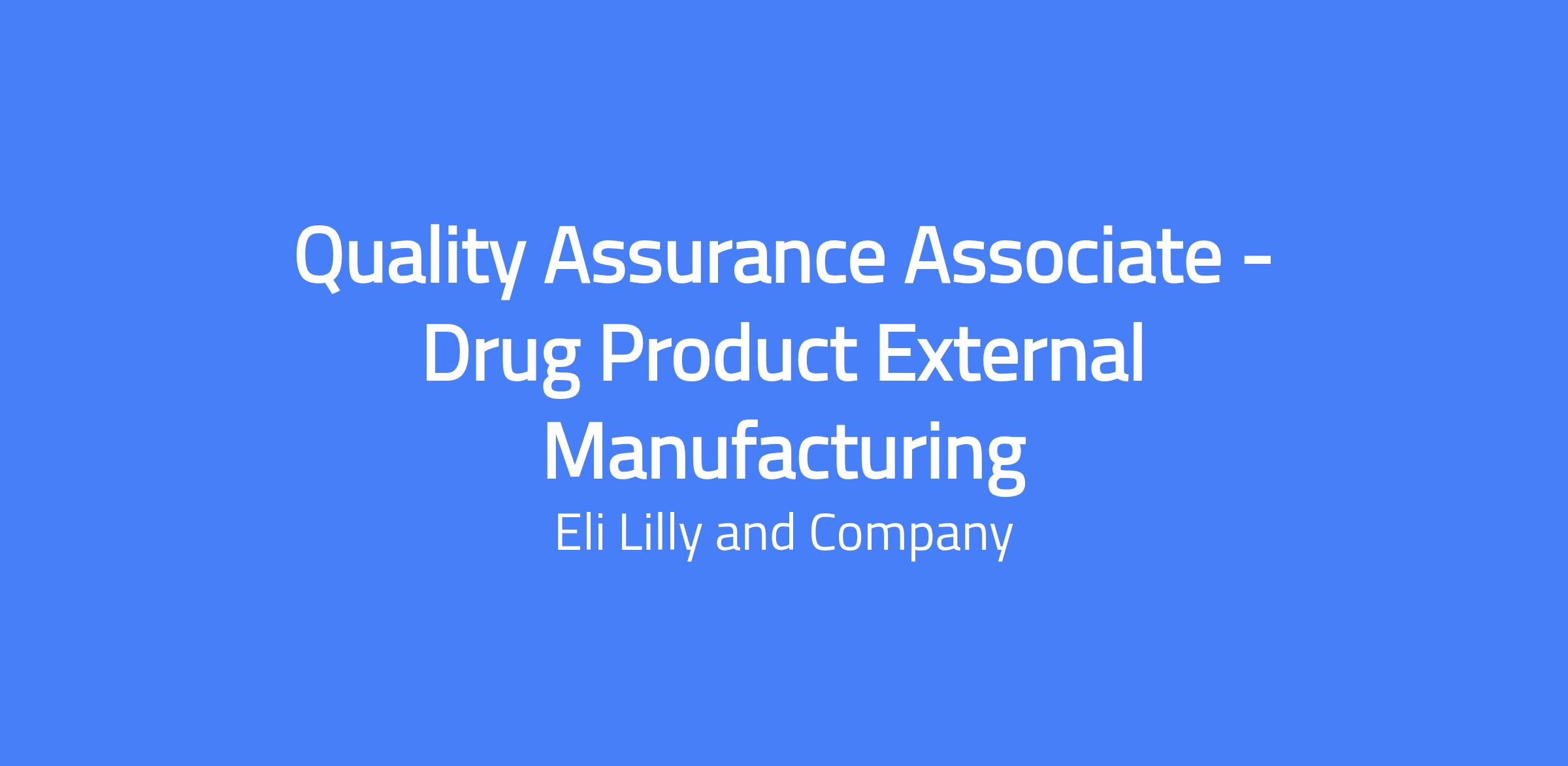 Quality Assurance Associate - Drug Product External Manufacturing