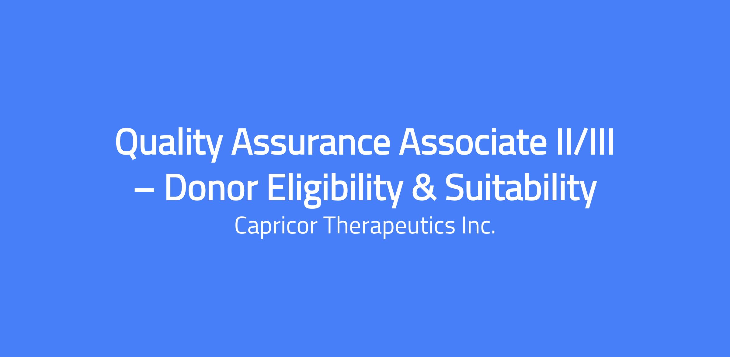 This position performs and documents donor eligibility and suitability determinations, independently or in coordination with another qualified QA reviewer, that directly affect the qualification and release of donor-derived starting materials for manufacturing.