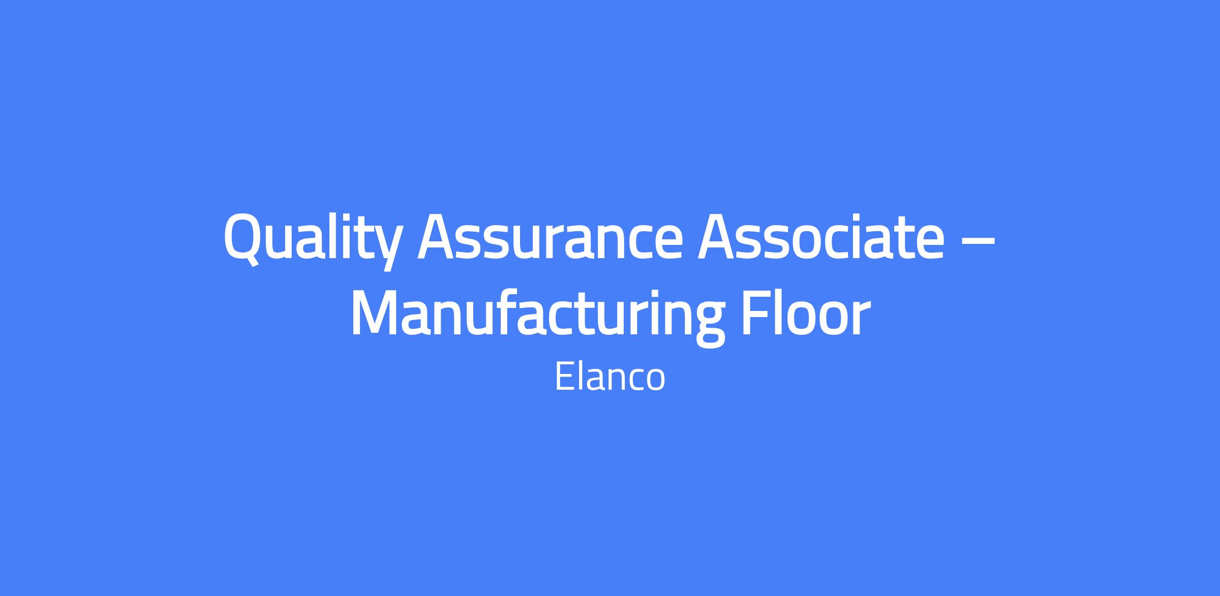 Quality Assurance Associate β Manufacturing Floor. Location: Elwood, KS Manufacturing Site. This role coordinates and conducts activities of the Quality Assurance Department regarding manufacturing floor support and has responsibilities for other quality and compliance related activities as directed by the Quality Assurance Manager. The position works closely with the Manufacturing and Process Teams to support day-to-day operations.
