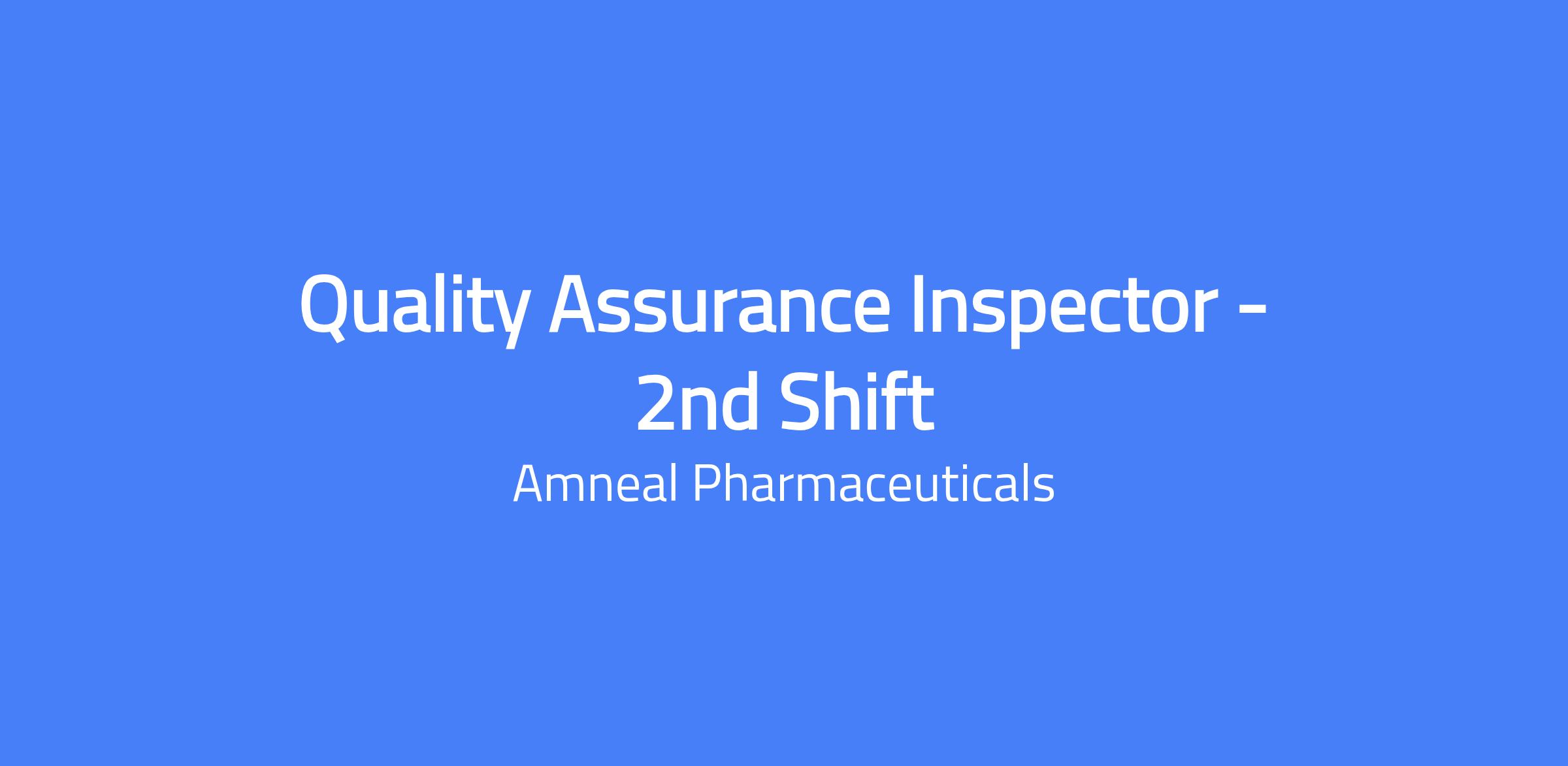 Quality Assurance Inspector - 2nd Shift responsible for sampling, inspecting and testing incoming materials, packaging components and returned goods to ensure compliance with established specifications and proper labeling control throughout manufacturing and packaging.