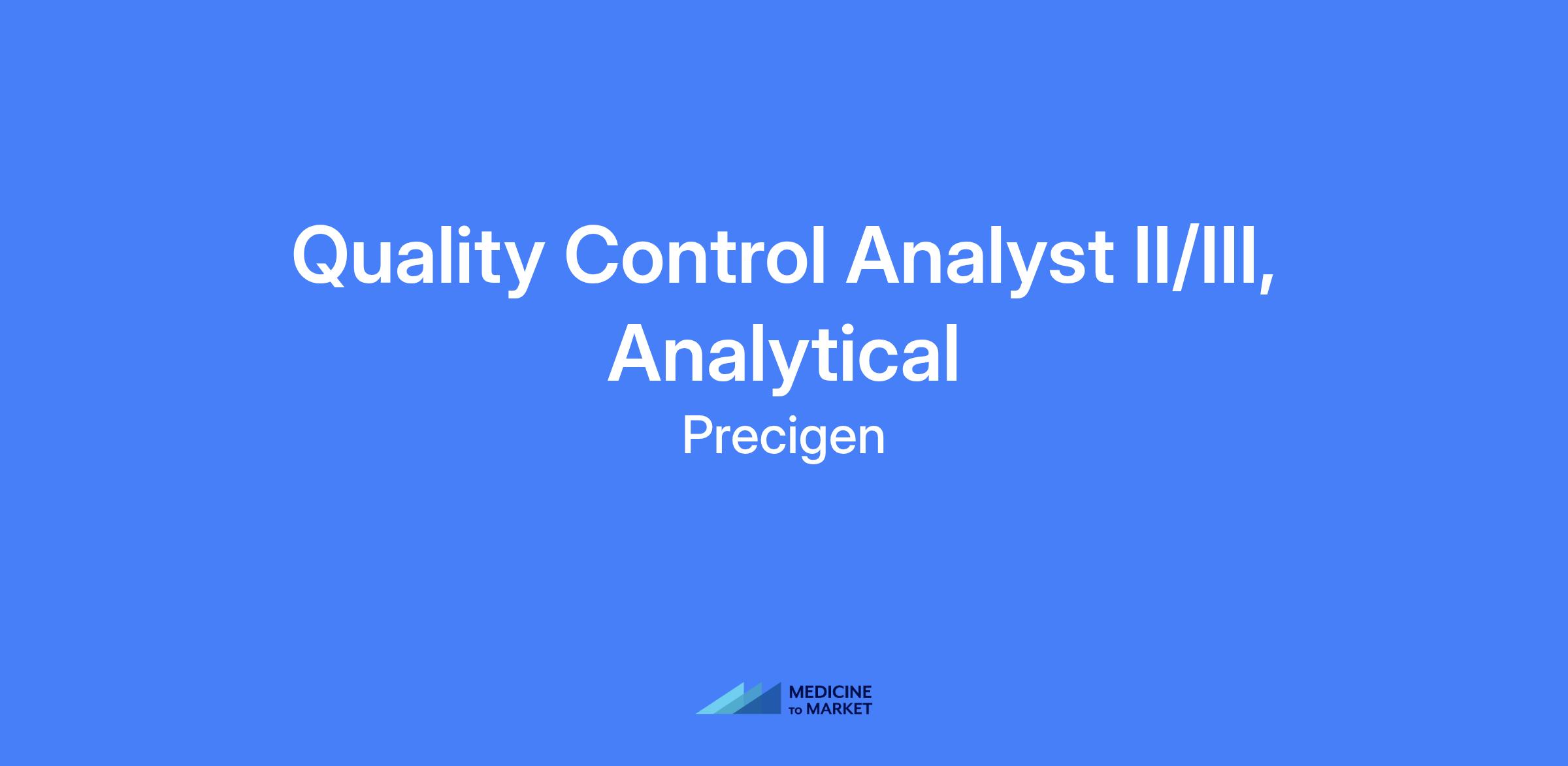 Quality Control Analyst II/III- Analytical. This onsite role is based in the Germantown, MD facility and provides Quality Control testing of clinical products, in-process and final product testing, and qualification of QC instrumentation.