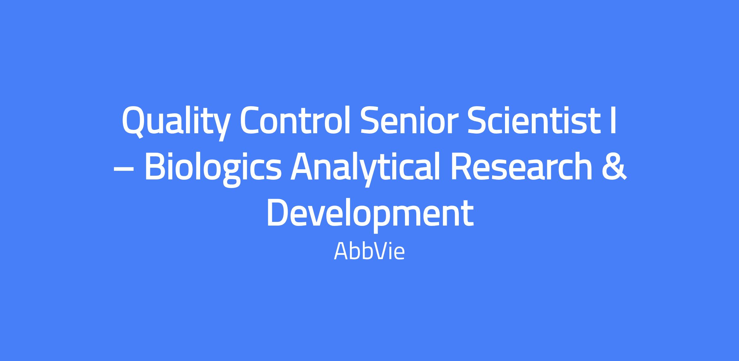 Quality Control Senior Scientist I – Biologics Analytical Research & Development
