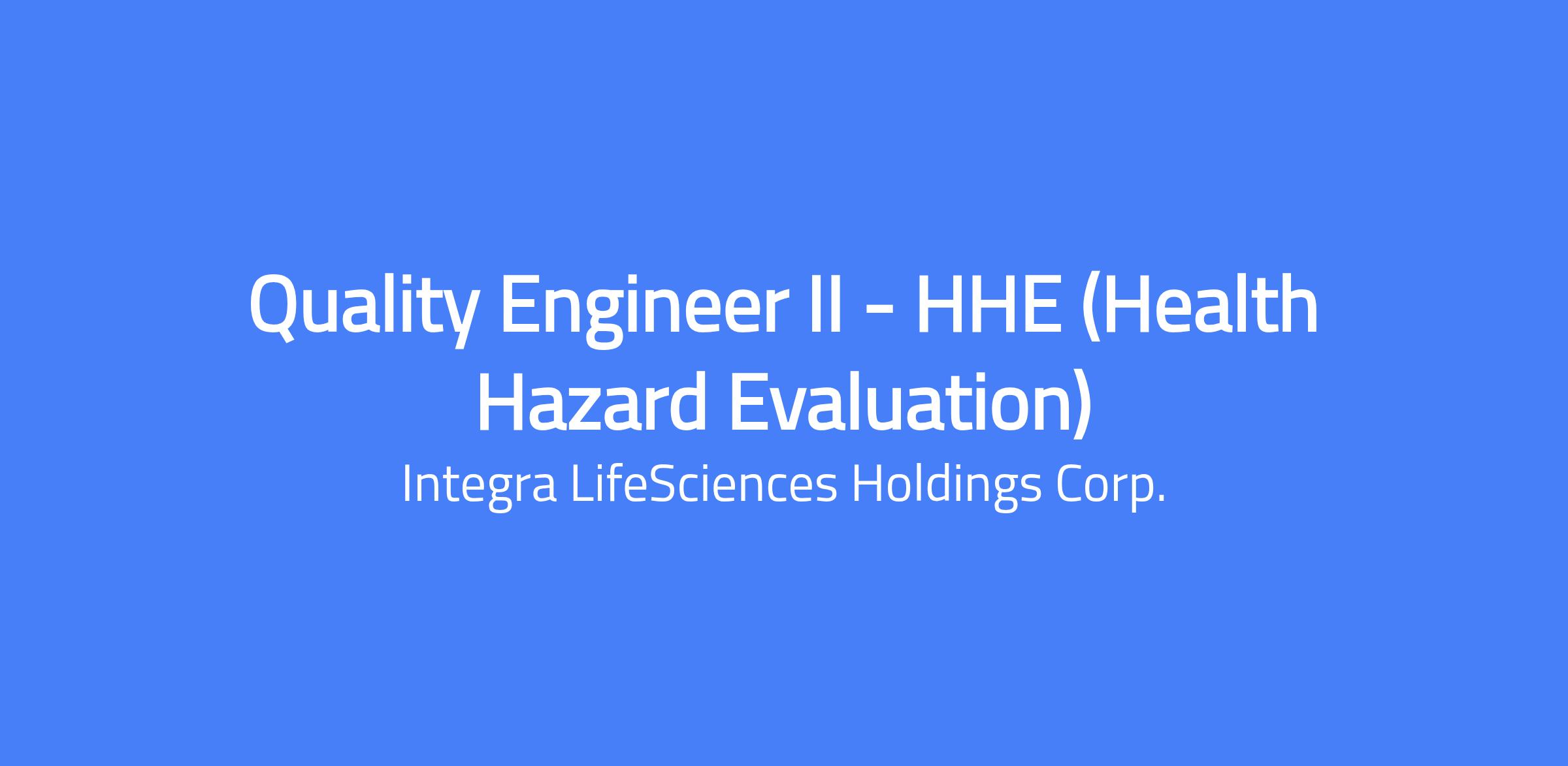 Changing lives. Building Careers. Joining us is a chance to do important work that creates change and shapes the future of healthcare. Thinking differently is what we do best. To us, change equals opportunity. Every day, our colleagues are challenging whatâs possible and making headway to innovate new treatment pathways to advance patient outcomes and set new standards of care. This Quality Engineer II is responsible for leading and executing Health Hazard Evaluations (HHEs) and supporting product Field Actions. The Quality Engineer II will work cross functionally with all manufacturing sites, design assurance, medical affairs and other SMEs involved in the HHE process. He/She will have exposure and visibility to leadership on issues related to product quality, safety and/or performance is inherent with this role. A solid understanding of US and international regulations is required (21 CFR, MDSAP, EU MDR, etc.) We need applicants that have experience in the Medical Device industry with Health Hazard Evaluation (HHE) risk assesment. ESSENTIAL DUTIES AND RESPONSIBILITIES: ⢠Lead and coordinate all required activities, such as cross functional meetings, to support the completion of HHEs. ⢠Ensure HHE documentation is complete, accurate and addresses regulatory requirements prior to approval. ⢠Prepare HHE documentation to be presented to Product Safety Board that includes the Corporate VP of Quality, Corporate VP of Regulatory and Corporate VP of Legal. ⢠Present HHE information at Product Safety Board alongside the other SMEs. ⢠Continually monitor and provide routine metrics to management on the progress of HHE's and Field Actions. ⢠When an HHE results in a Field Action, support the initiation of that Field Action and any required logistics needed. ⢠Ensure Field Action documents are maintained and archived appropriately. ⢠As needed, prepare documents required to be submitted to the FDA for periodic updates and/or termination requests. ⢠Provide support and/or participate in regulatory audits/inspections as required. ⢠Write and/or revise department procedures as needed. ⢠Keep apprised of new regulations, standards, policies, and guidance documents issued by relevant regulatory authorities that may impact HHE's and/or Field Actions. Perform all other related duties as directed by management. ⢠Responsible for any changes or updates to the applicable Global Operating Procedures and/or Templates. ⢠Participate in internal or external audits as the Subject Matter Expert for HHEs. ⢠Participate in site or global projects and improvement efforts, as needed. ⢠Keeps apprised of new regulations, standards and/or processes that impact complaint handing and regulatory reporting responsibilities ⢠Other duties as assigned. DESIRED MINIMUM QUALIFICATIONS: ⢠Education: Bachelorâs degree in a scientific discipline required, preferably Biomedical Engineering; strong analytical skills, exceptional writing and interpersonal relationship skills. ⢠Experience: 3-5+ yearsâ experience working in a medical device organization, specifically in a Quality role. ⢠Computer skills to include knowledge and proficiency with Excel, SharePoint and proficient use of the worldwide web network. ⢠Strong writing, project management, problem solving, and communication skills. ⢠Experience working in Oracle, Agile and TrackWise systems preferred. ⢠Demonstrated organizational, management and communication skills. ⢠Must be able to observe company policies and safety procedures at all times. ⢠Must be able to give and welcome constructive feedback; contribute to building a positive team spirit. ⢠Must be able to treat others with respect; work with integrity and ethically; uphold organizational values. ⢠Must be able to work independently with minimal supervision. ⢠Must be able to prioritize projects and manage time effectively Salary Pay Range: $71,300.00 - $97,750.00 USD Salary Our salary ranges are determined by role, level, and location. Individual pay is determined by several factors including job-related skills, experience, and relevant education or training. In addition to base pay, employees may be eligible for bonus, commission, equity or other variable compensation. Your recruiter can share more about the specific salary range for your preferred location during the hiring process. Additional Description for Pay Transparency: Subject to the terms of their respective plans, employees and/or eligible dependents are eligible to participate in the following Company sponsored employee benefit programs: medical, dental, vision, life insurance, short- and long-term disability, business accident insurance, and group legal insurance, and savings plan (401(k)). Subject to the terms of their respective policies and date of hire, Employees are eligible for the following https://jobs.integralife.com/total-rewards/ Integra LifeSciences is an equal opportunity employer, and is committed to providing equal employment opportunities to all qualified applicants and employees regardless of race, marital status, color, religion, sex, age, national origin, sexual orientation, physical or mental disability, or protected veteran status. This site is governed solely by applicable U.S. laws and governmental regulations. If you'd like more information on your rights under the law, please see the following notices: EEO Is the Law | EOE including Disability/Protected Veterans Integra LifeSciences is committed to provide qualified applicants and employees who are disabled veterans or individuals with disabilities with needed reasonable accommodations in accordance with the ADA. If you have difficulty using our online system due to a disability and need an accommodation, please email us at careers@integralife.com. Unsolicited Agency Submission Integra LifeSciences does not accept unsolicited assistance from search firms for employment opportunities. All CVs/resumes submitted by search firms to any employee at ou
