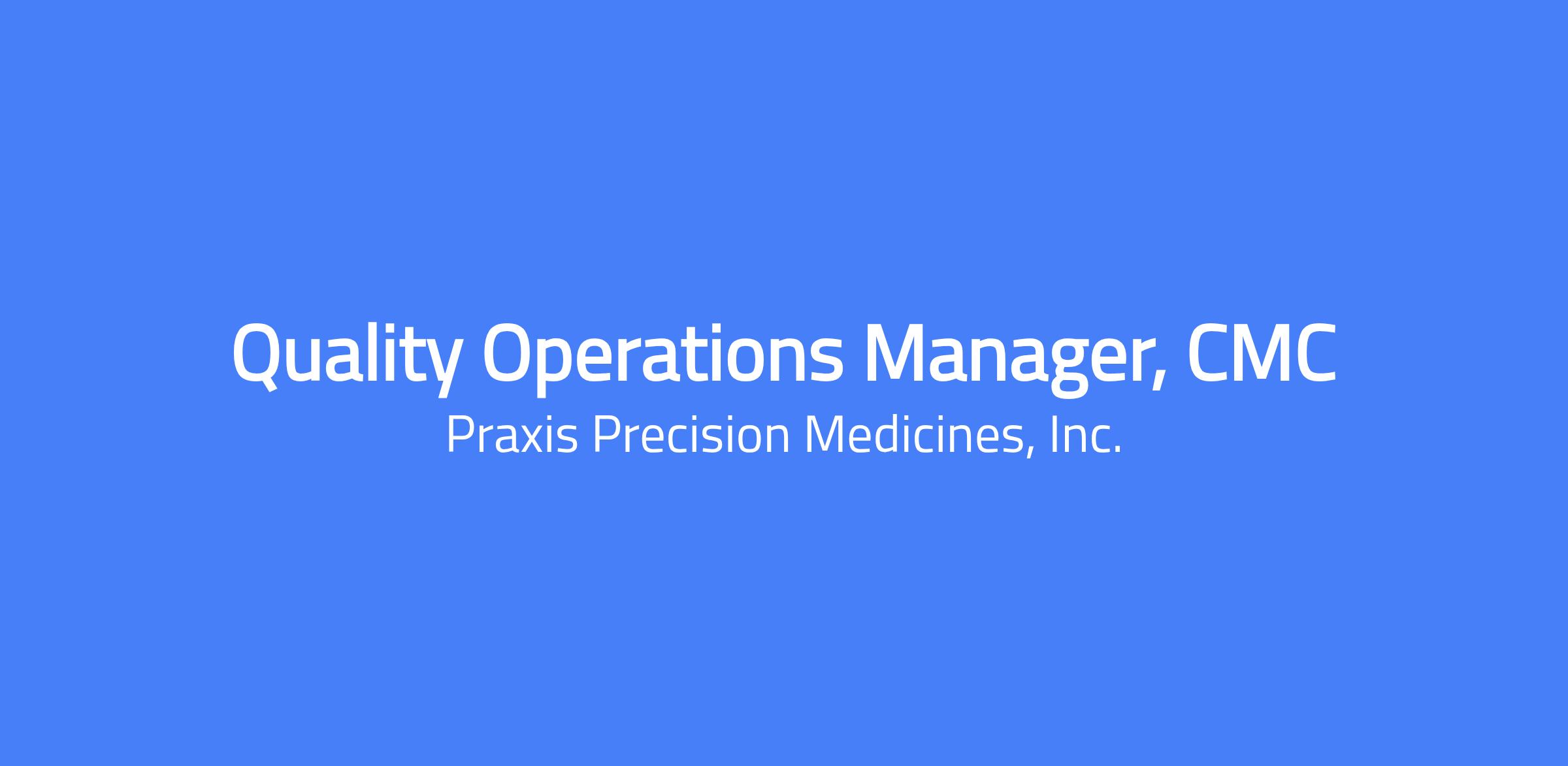 Location: Remote with travel to the Boston area as needed. The Quality Operations Manager, CMC oversees quality operations to assure product quality and regulatory compliance for drug substance and drug product across clinical and commercial stages, serving as the quality expert for Praxis' pipeline and guiding strategic quality decisions throughout the product lifecycle. The role collaborates with the CMC team on clinical-stage development, launch readiness, and commercial quality operations.