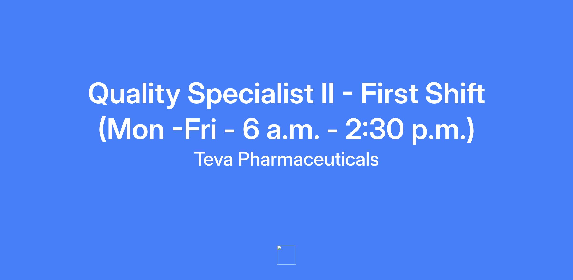 Quality Specialist II - First Shift (Mon - Fri - 6 a.m. - 2:30 p.m.).