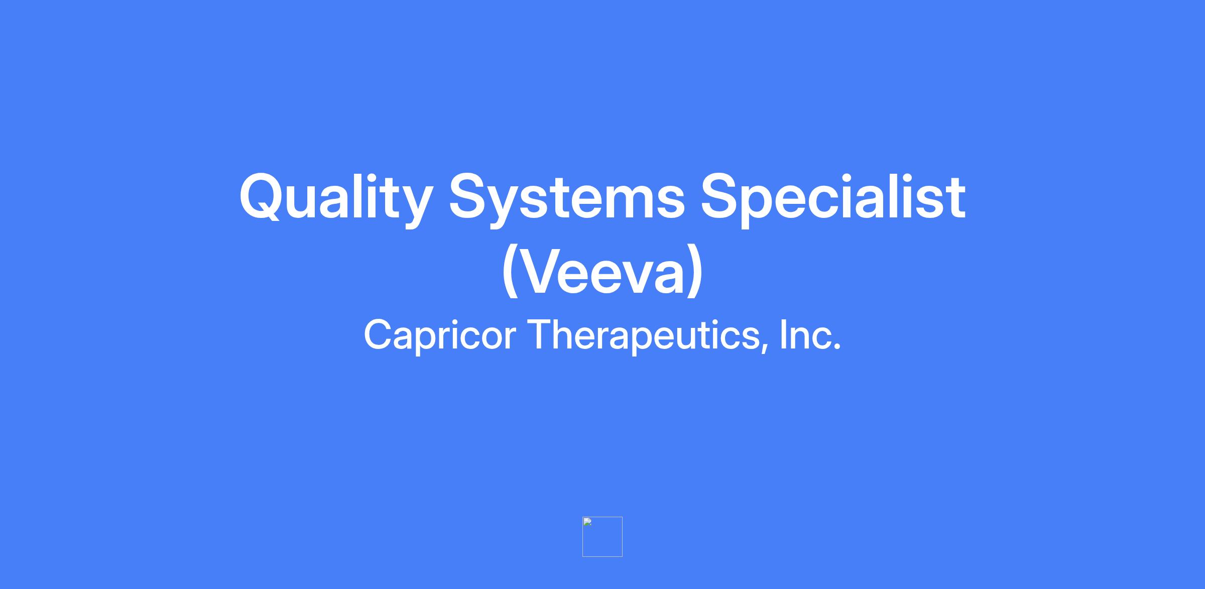 The Quality Systems Specialist (Veeva) is responsible for supporting Capricor’s transition to the Veeva electronic Quality Management System (eQMS) and providing ongoing system administration, configuration, and maintenance. This role ensures the eQMS meets GxP, regulatory, and operational requirements while enabling efficient and compliant quality processes. The Specialist will support implementation activities, system configuration, validation, user support, continuous improvement, and cross-functional collaboration.