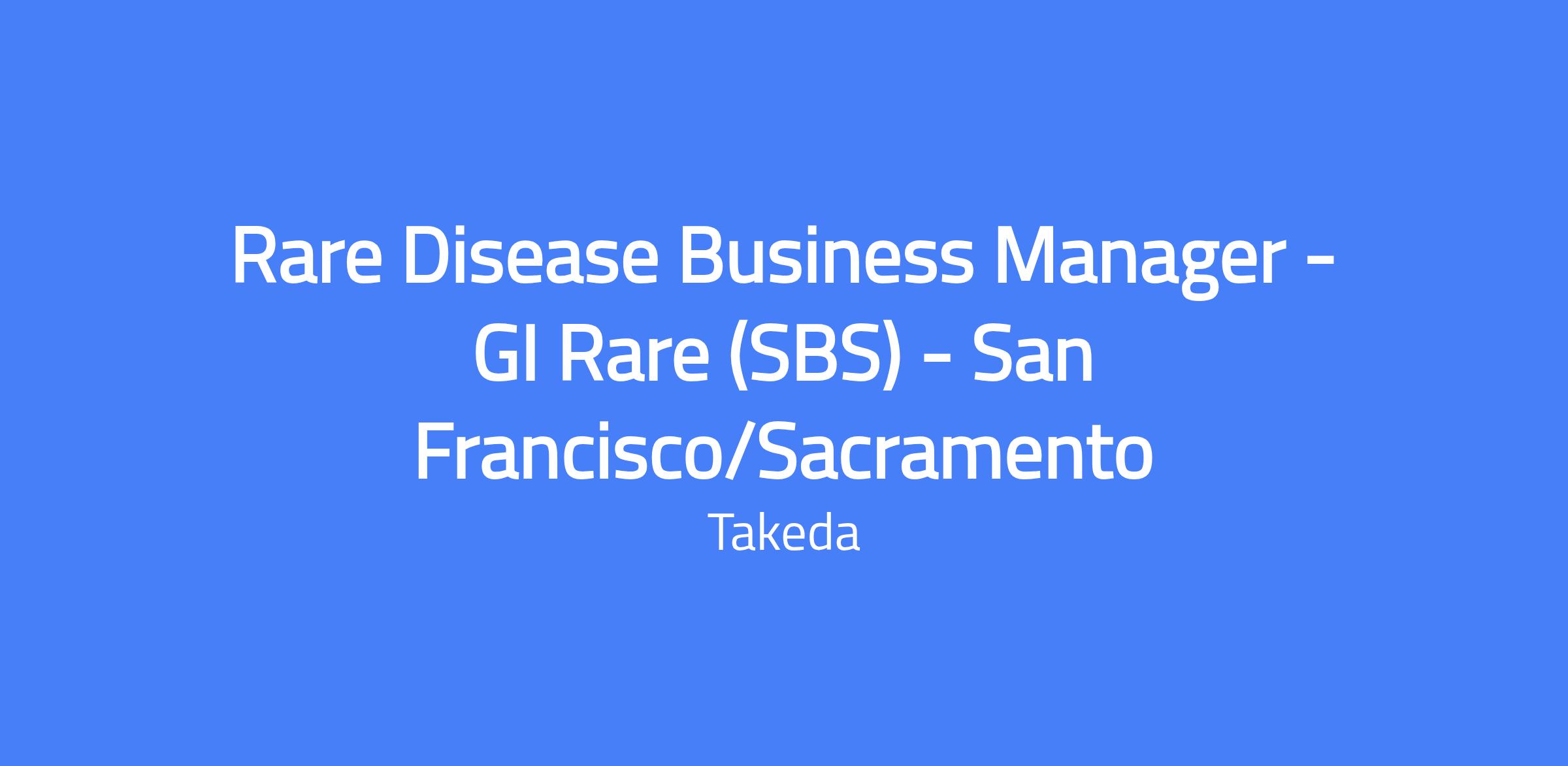 Rare Disease Business Manager (San Francisco/Sacramento territory) β Gastroenterology Rare Disease Sales Team.