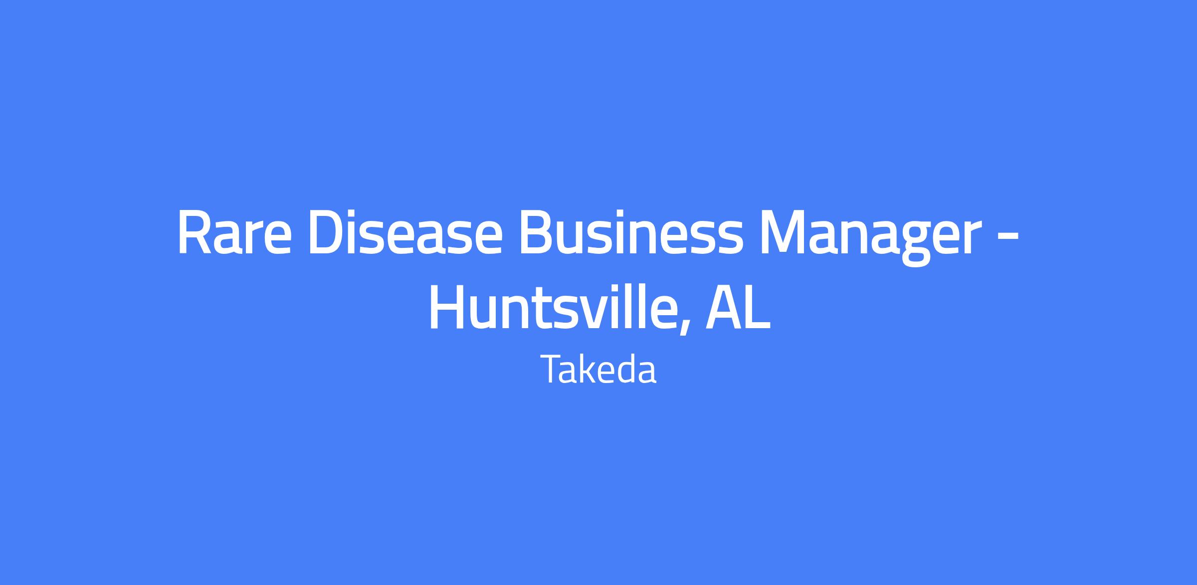 The Rare Disease Business Manager (RDBM) based in Huntsville, AL, drives sales growth and territory expansion in narcolepsy type 1. This role collaborates with the Regional Business Leader and cross-functional teams to educate healthcare providers and ensure patient access to a new therapeutic option after regulatory approval. The RDBM will establish and build impactful relationships with targeted HCPs and accounts within the territory and support a new product introduction in a new therapeutic area for Takeda. After regulatory approval, the role focuses on educating clinicians about the product, the orexin system, and narcolepsy type 1 to generate demand.