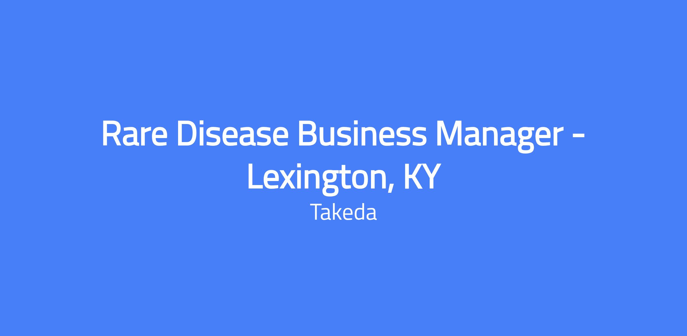 The Rare Disease Business Manager (RDBM) β Lexington, KY (virtual) drives sales and territory growth in narcolepsy type 1 by executing strategic plans and engaging healthcare providers to educate and facilitate patient access to a newly approved therapy. Reporting to a Regional Business Leader, the RDBM will support a new product introduction in a new therapeutic area for Takeda, build impactful relationships with targeted HCPs and accounts within the territory, and use insights to shape regional execution. After regulatory approval, the role focuses on generating demand through clinical education and in-depth knowledge of narcolepsy type 1 and the orexin system.