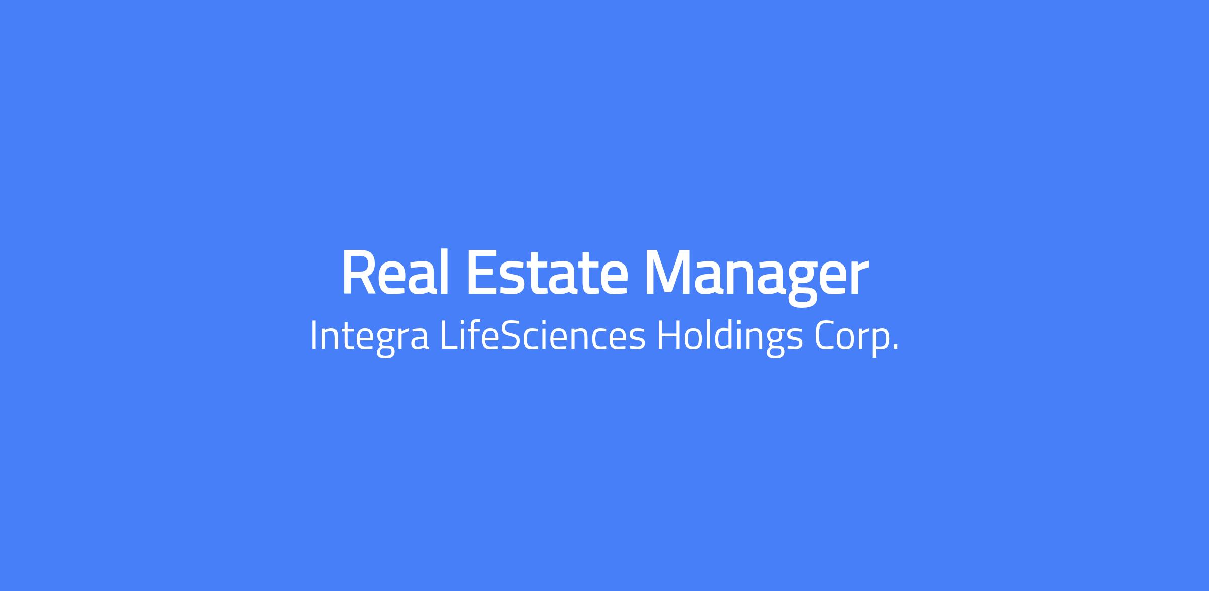 Changing lives. Building Careers. Joining us is a chance to do important work that creates change and shapes the future of healthcare. Thinking differently is what we do best. To us, change equals opportunity. Every day, our colleagues are challenging whatâs possible and making headway to innovate new treatment pathways to advance patient outcomes and set new standards of care. The Real Estate Manager is responsible for overseeing Integraâs real estate portfolio including offices, high-tech R&D laboratories and manufacturing facilities throughout the globe. This role will oversee the companyâs portfolio of real estate leases and own facilities ensuring adherence to company policies and procedures. The role will be responsible for maintaining the real estate portfolio to enable and support strategic decision making, expansion, consolidation, or facility life cycle. The specialist will strategically interact with leadership, finance, procurement, brokers, agents and landlords ensuring the best possible outcome for the company. REPORTING & MANAGEMENT SCOPE SUPERVISION RECEIVED Under direct supervision of Director Global Facilities Engineering SUPERVISION EXERCISED Supervision of contractors / vendors as needed based on project workload. KEY RESPONSIBILITIES Collaborate with internal stakeholders, including property/finance managers, occupancy team, business continuation team, legal, and finance teams. Serve as a point of contact regarding lease-related inquiries, issues, and requests for information, ensuring timely and accurate responses to inquiries. Work closely with Landlords and Finance Managers to ensure an accurate understanding of annual reconciliations - make necessary payments to Landlords. Ability to understand and interpret complex commercial lease terminology (base rent, operating expenses, commencement date, rent commencement date, real estate tax, insurance obligations, etc.) Maintain accurate and up-to-date information regarding lease agreements, including lease terms, options, rental rates, expiration dates, and tenant details into the said database. Input Lease information and documentation into Lease Real Estate Management database. Other administration tasks, such as lease abstraction, critical dates reporting and document management (both physical and electronic). Generate reports and perform analysis on lease portfolio performance, including lease expirations, occupancy rates, lease obligations, and financial metrics. Develop actionable and accessible dashboards and reports, leveraging data visualization tools (i.e. Tableau or similar) for presentations to Senior Management. Ensure compliance with regulatory requirements and internal policies, including lease accounting standards (e.g., ASC 842), lease abstraction standards, and data privacy regulations. Support lease negotiations by providing accurate lease data. Initiate purchase orders to facilitate monthly rent payments. Ensure monthly rent payments are accurate and make appropriate adjustments to purchase orders. Oversight and Monitoring of Property Taxes for owned properties. Knowledge of Oracle/iProc Partner with technical finance to properly summarize and record lease data/cost and cashflow Evaluate and implement technology solutions, such as real estate database software or lease administration platforms, to enhance lease administration processes, improve data integrity, and increase operational efficiency. Demonstrate a strong work ethic, dependability, accountability, and responsibility, coupled with high organizational skills; capable of multitasking, meeting deadlines, and working under pressure while maintaining a professional attitude; self-motivated and proactive, showing initiative without direct supervision. Demonstrate strong written and verbal communication skills, adept at managing multiple inquiries with time-sensitive deadlines; possesses excellent organizational, time management, and communication skills. Participate in cross-functional project teams involving internal departments, external vendors, and customers. Perform other related duties as required. REQUIRED SKILLS & MINIMUM QUALIFICATIONS Education Bachelorâs degree or equivalent experience required. Experience 3-5+ years of experience with real-estate and/or real-estate transaction experience required. Proven ability to manage multiple projects simultaneously. Experience leading cross-functional teams and presenting to senior leadership. Demonstrated flexibility, multitasking, and high performance in dynamic environments. Skills & Competencies Strong organizational and communication skills. Proficiency in MS Office Suite and statistical analysis software. Self-motivated team player with ability to work independently and collaboratively across all levels of the organization. Tools And Equipment Used This role requires regular use of tools and equipment relevant to the work environment. Examples include: General office equipment: Computers, printers, copiers, fax machines, and telephone communication systems. Finance and Lease electronic systems such as Oracle and CoStar Electronic signature systems and requirements Additional tools may vary depending on the specific function PHYSICAL REQUIREMENTS The physical requirements listed below represent the motor and physical abilities necessary to successfully perform the essential duties of this position. In accordance with the Americans with Disabilities Act (ADA), reasonable accommodations may be made to enable individuals with disabilities to perform these duties. While performing the responsibilities of this role, the employee is expected to: Sit, listen, speak, and move throughout various areas of the building. Travel across all company locations as needed. Periodically lift and/or move items up to twenty-five pounds. Travel domestically and internationally via car, train, or airplane, as required by the role. ADVERSE WORKING CONDITIONS There are no adverse working conditions associated