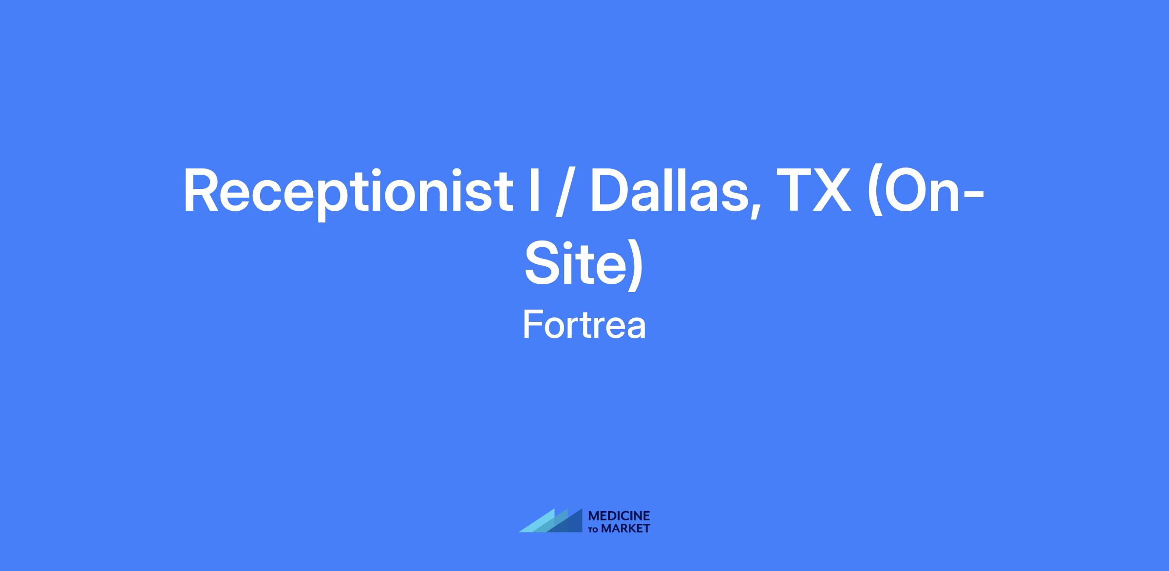 Receptionist I, Dallas, TX (On-Site) — office/clinic-based role interacting with healthy volunteer participants in a fast-paced, team-oriented environment within a Clinical Research Organization.