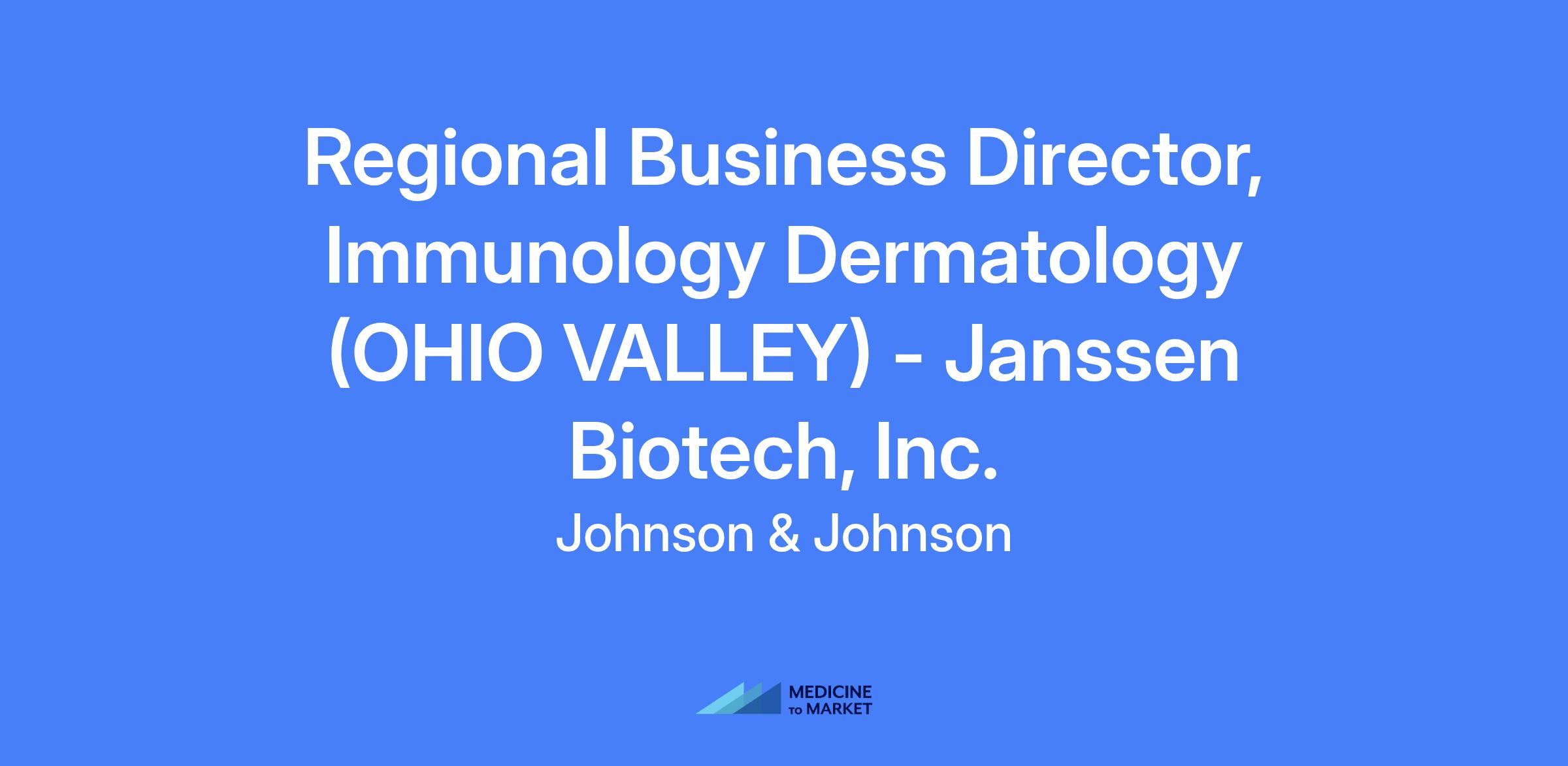 Regional Business Director, Immunology Dermatology (OHIO VALLEY) responsible for leading a team across Janssen Biotech’s Dermatology accounts with regional scope, including interfacing with cross-disciplinary stakeholders. Role based in the field with preference for proximity to major Ohio Valley cities.
