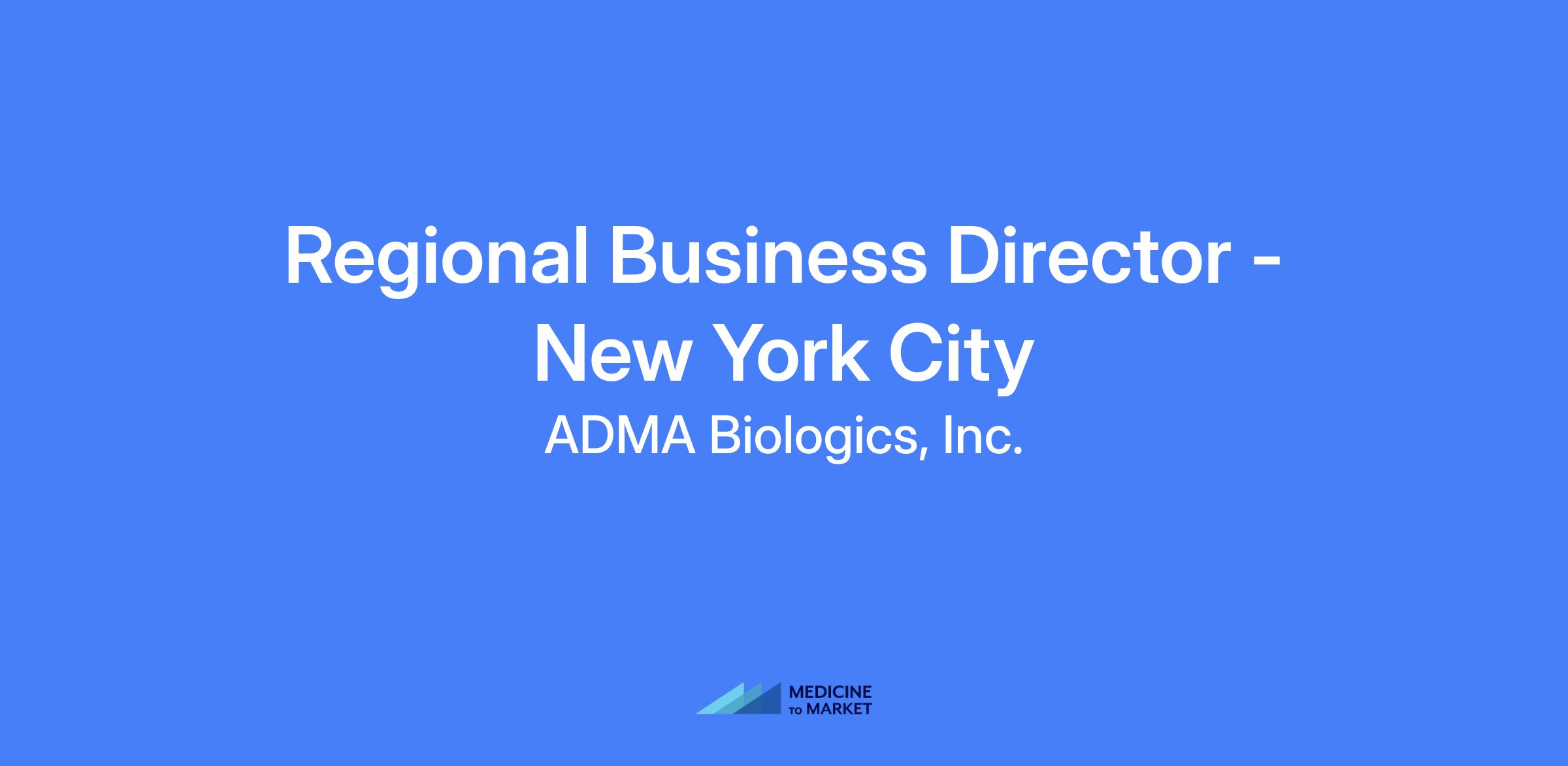 Regional Business Director - New York City responsible for sales planning and results supporting ADMA Biologics products primarily in non-acute settings and, as needed, in acute market spaces.