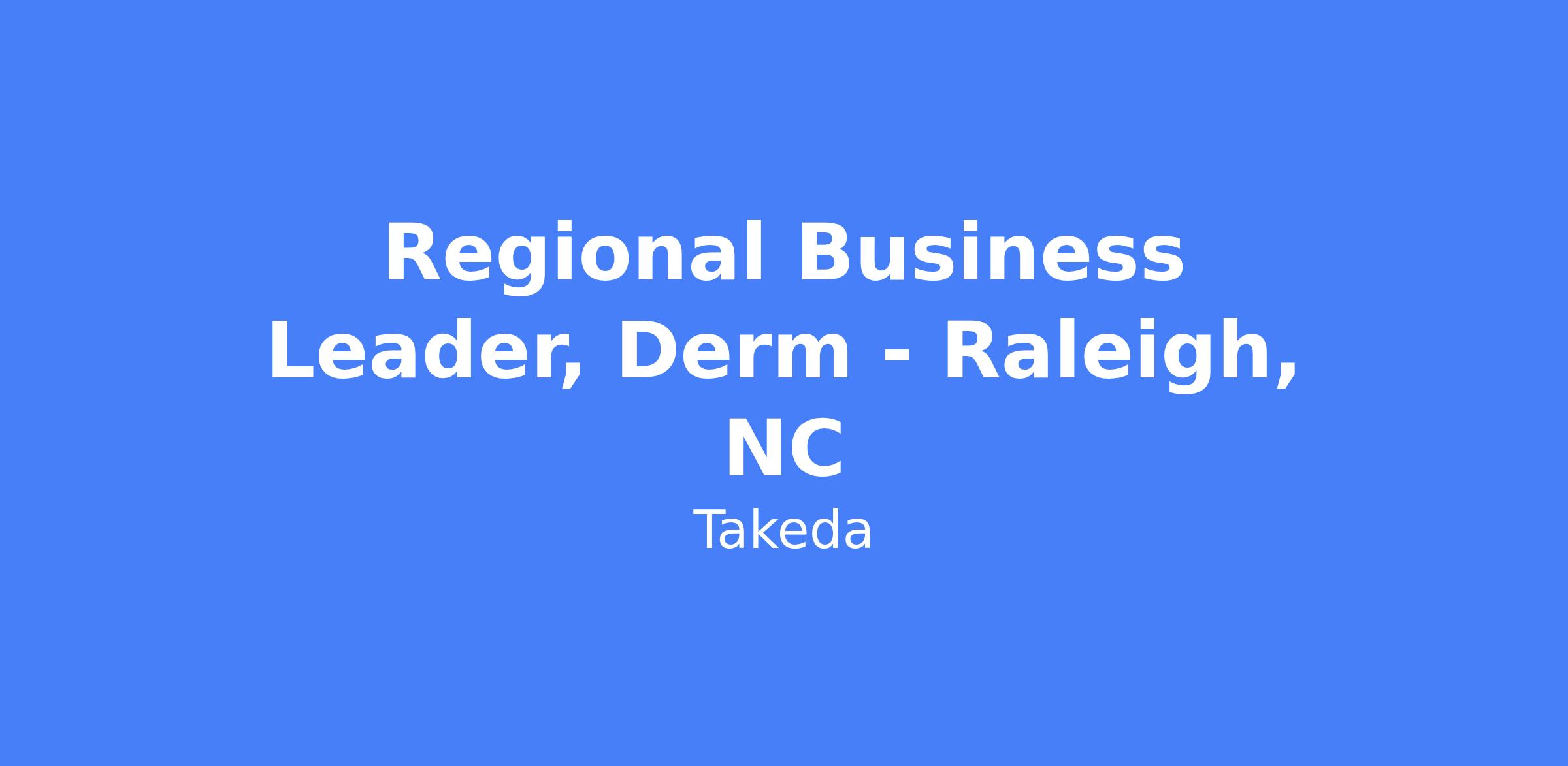 The Regional Business Leader, Dermatology is an enterprise thinker who leads cross-functional collaboration with Healthcare Providers and Key Accounts to identify shared priorities, deliver clinical value, and communicate Takeda resource messaging in a patient-centered approach. They instill a culture of high performance, accountability, and compliant behavior that drives the brand strategy and tactics, own the implementation of company priorities to maximize sales results, and hire, lead, and develop a new team of representatives to meet or exceed expectations, especially during a new product launch in a developing therapeutic area. Location: North Carolina (virtual).