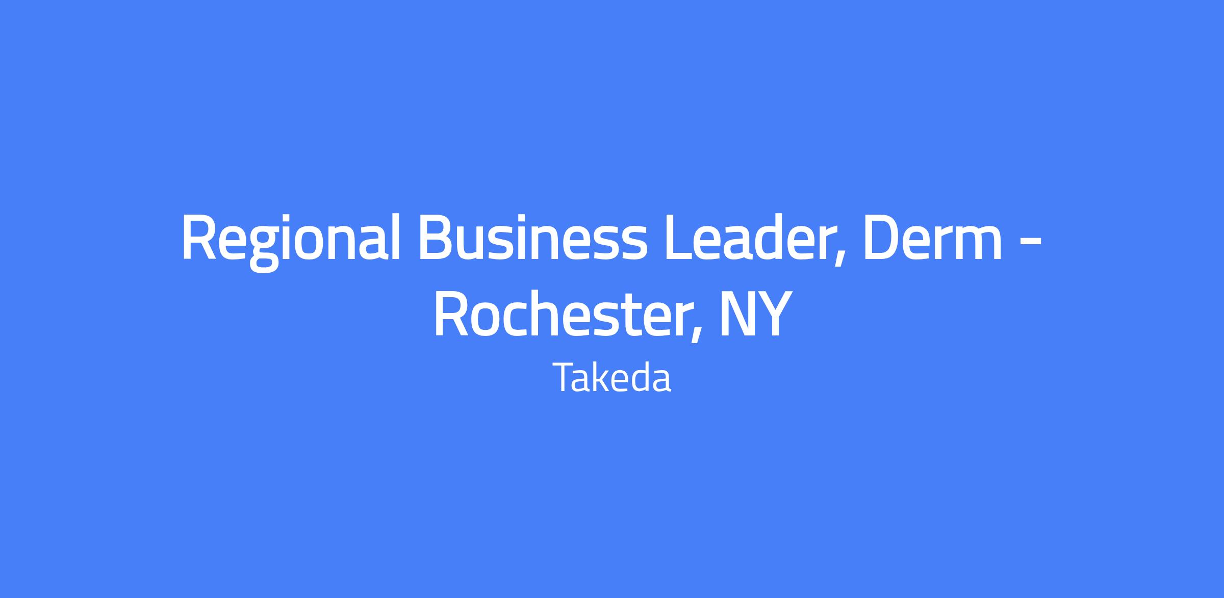 The Regional Business Leader, Dermatology, based in Rochester, NY, is an enterprise thinker who guides a field-based team to collaborate with healthcare providers and key accounts to identify shared priorities, deliver clinical value, and convey Takeda resource messaging in a patient-centered approach. The role fosters high performance, accountability, and compliant behavior to execute the brand strategy and tactics, and leads hiring and development of a new team to meet or exceed expectations. With a new product launch in a developing therapeutic area, strong execution and building Takeda’s reputation will be essential.