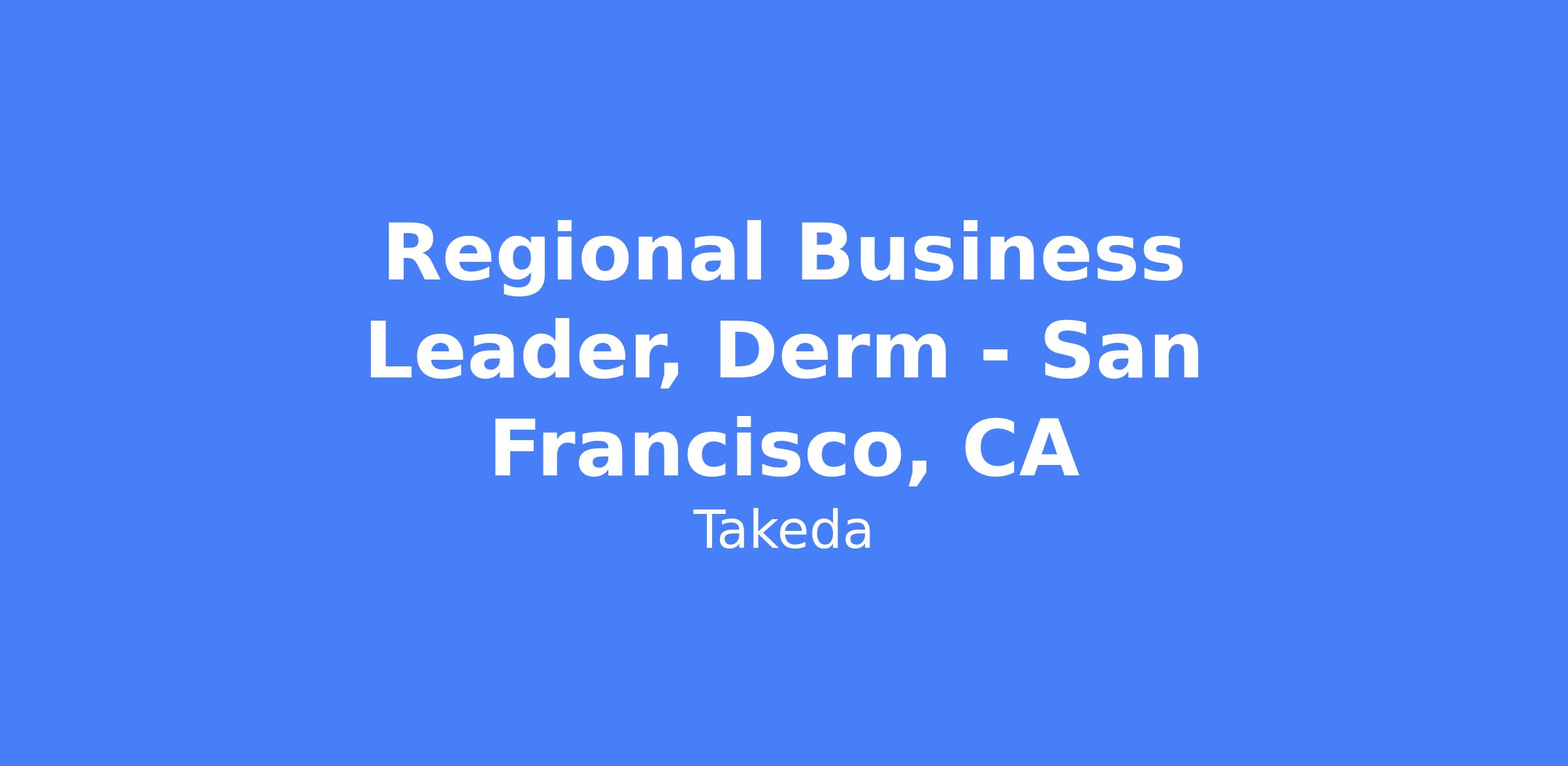 The Regional Business Leader, Dermatology is an enterprise thinker who leads a field-based team to work cross-functionally with Healthcare Providers and Key Accounts, delivering clinical value and Takeda resource messaging in a patient-centered approach to establish Takeda as a preferred partner. The role instills a culture of high-performance, accountability and compliant behavior that encourages and motivates the team to complete the brand strategy and tactics. The Regional Business Leader takes ownership of implementing company priorities to maximize sales results, including launching new products in developing therapeutic areas. They are responsible for hiring, leading, and developing a new team of representatives that can meet and exceed expectations. Location: California - Virtual.