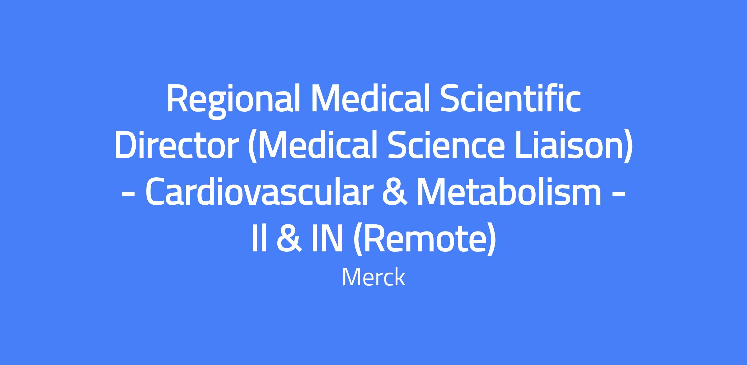 The Cardiovascular & Metabolism Regional Medical Scientific Director (RMSD) is a credentialed therapeutic and disease expert who engages in bidirectional exchange of scientific or medical information with Scientific Leaders (SLs). This MSL-type role provides balanced, factual, scientific information about non-product areas of interest to the Company and replies to scientific questions from SLs, including questions about Company products. The work of an RMSD is aligned to: Scientific Exchange, Research, Scientific Congress Support, and Scientific Insights. Cardiovascular & Metabolism RMSDs liaise between the scientific community and the Company to enhance the comprehension of scientific foundations and goals for approved, in-development, and active Company-sponsored trials and/or investigator-sponsored research studies. The RMSD serves as a role model for other field medical team members in ways that include on-boarding and/or sharing of therapeutic expertise.
