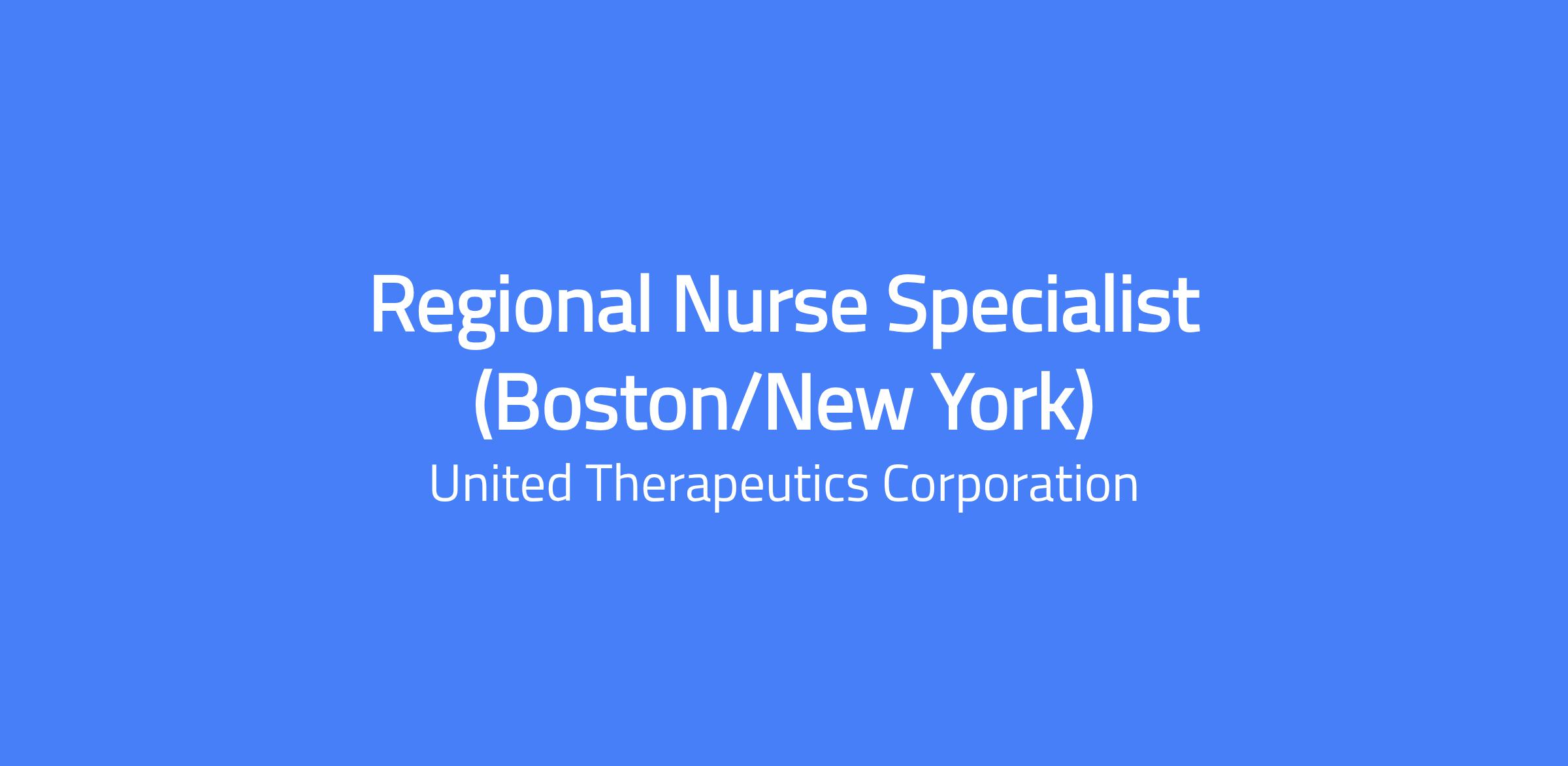 Regional Nurse Specialist responsible for educating and supporting prescribers, nurses, and allied healthcare professionals on UT products, including indications, dosing, adverse effects, and administration techniques. Will facilitate new patient therapeutic initiation and the referral process, ensuring clinicians have tools and education to start patients safely. Territory includes ME, VT, CT, MA, RI, NH and Upstate NY; travel at least 80% with overnight stays as needed.