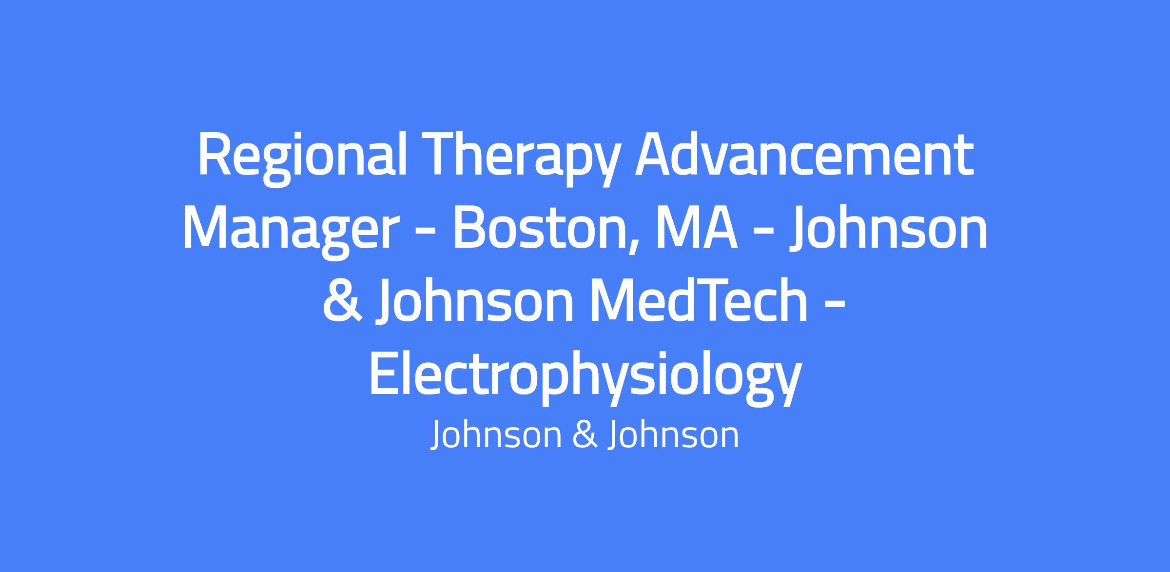 Regional Therapy Advancement Manager - Boston, MA - Johnson & Johnson MedTech - Electrophysiology