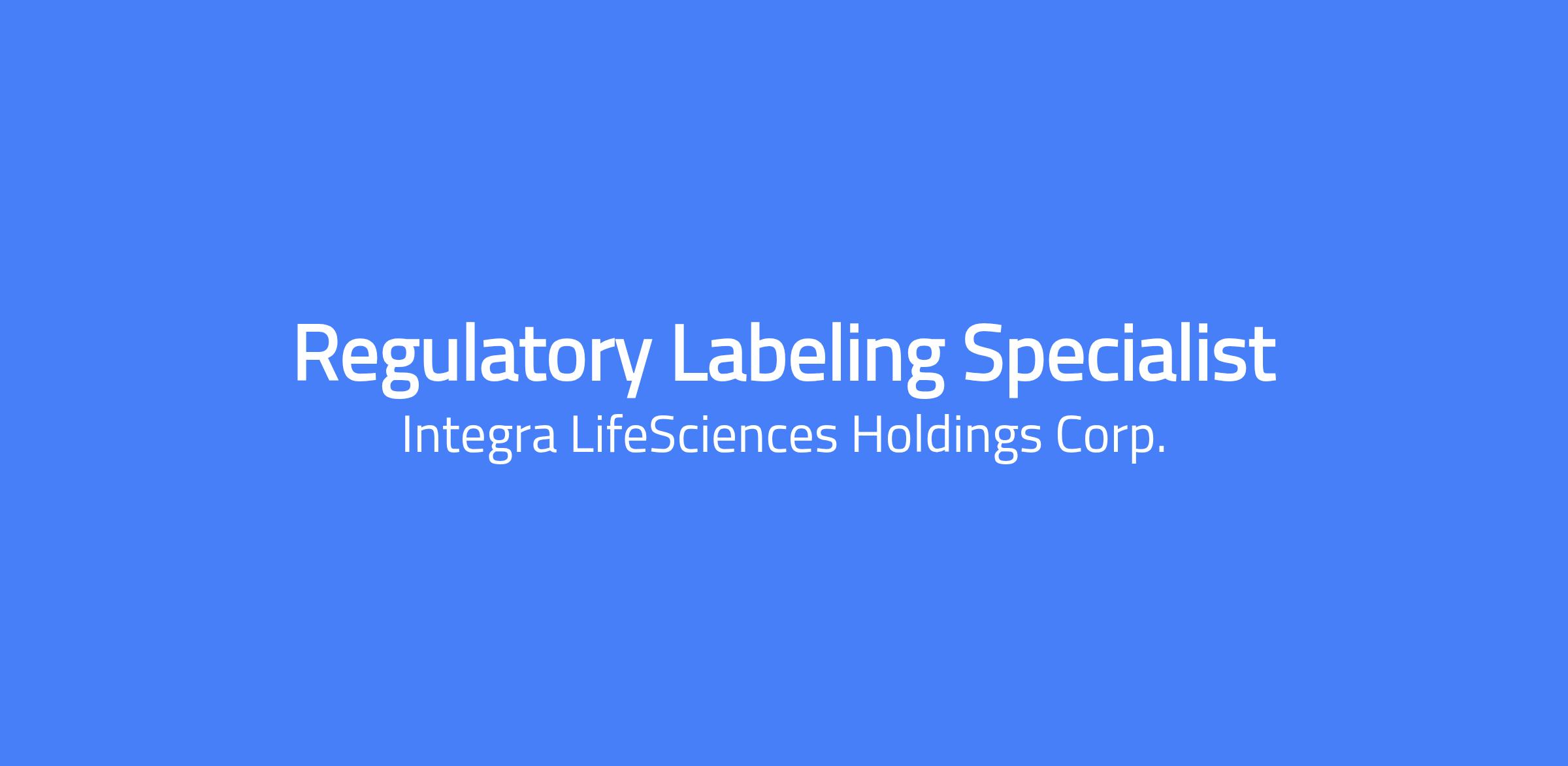 Changing lives. Building Careers. Joining us is a chance to do important work that creates change and shapes the future of healthcare. Thinking differently is what we do best. To us, change equals opportunity. Every day, our colleagues are challenging whatâs possible and making headway to innovate new treatment pathways to advance patient outcomes and set new standards of care. The Regulatory Labeling Specialist has overall accountability to collaborate with cross functional teams to ensure compliance with the creation and relevant updates of labeling. Review and approval of new and existing labeling and design concepts ensuring that content complies with regulatory labeling requirements and guidelines, and that the label content and design are correct. Finding opportunities to improve product labeling clarity, appearance, consistency and reduce product labeling cost. Support all Codman Surgical Specialties and Tissue Technologies product lines within the Integra LifeSciences product portfolio manufactured by Integra and our external manufacturing partners (CMOs) by leading the development and execution of labeling for new and existing products and ensuring delivery of all agreed timelines. Identifying and implementing labeling process improvements, new policies, and procedures, and establishing best practices. Develop relationships with strategic external partners (i.e., CMOs) in support of Integraâs expanding commercial portfolio and manage ongoing relationships. To perform this job successfully, an individual must be able to perform each essential duty satisfactorily. Project Manager for medium to large scale projects (i.e., Acquisitions, New Product Introductions, etc.) Lead and coordinate the design, development, approval, and implementation of new or revised product labeling. Coordinate packaging artwork development and changes with product marketing and manufacturing teams. Serve as label content and execution subject matter expert. Advise project teams and cross functional partners on labeling best practice. Assist with implementing global electronic label artwork management system to both legacy Integra sites as well as all new acquisitions. Manage multiple projects while working in a complex cross functional environment. You will support development and use of current and new tools, technologies, and processes to support efficient global labeling development and worldwide submissions and approvals. Performs all other related duties as directed by manager. Qualifications: Bachelorâs degree in STEM, Packaging Science, Graphic Design or related field required. Minimum of 3 -5 years of packaging/labeling development or graphic design experience; including experience in a regulated pharmaceutical or medical device industry. Excellent organizational skills Aptitude for learning new software and systems. Basic project management skills Ability to find issues or problems and work quickly to find and implement solutions. Knowledge of core Microsoft Office software including Word, PowerPoint, and Excel Knowledge of Adobe Creative Suite software including InDesign, Photoshop, and Illustrator a plus In-depth knowledge of U.S. and International regulations and guidelines pertaining to labeling and proven ability to decipher and understand implications of label changes on pending and approved labels. Demonstrated knowledge of FDA regulations, ISO 13485, Medical Device Directive Regulation (93/42EEC), and other US and international regulations and standards. Salary Pay Range: $62,000.00 - $85,000.00 USD Salary Our salary ranges are determined by role, level, and location. Individual pay is determined by several factors including job-related skills, experience, and relevant education or training. In addition to base pay, employees may be eligible for bonus, commission, equity or other variable compensation. Your recruiter can share more about the specific salary range for your preferred location during the hiring process. Additional Description for Pay Transparency: Subject to the terms of their respective plans, employees and/or eligible dependents are eligible to participate in the following Company sponsored employee benefit programs: medical, dental, vision, life insurance, short- and long-term disability, business accident insurance, and group legal insurance, and savings plan (401(k)). Subject to the terms of their respective policies and date of hire, Employees are eligible for the following https://jobs.integralife.com/total-rewards/ Integra LifeSciences is an equal opportunity employer, and is committed to providing equal employment opportunities to all qualified applicants and employees regardless of race, marital status, color, religion, sex, age, national origin, sexual orientation, physical or mental disability, or protected veteran status. This site is governed solely by applicable U.S. laws and governmental regulations. If you'd like more information on your rights under the law, please see the following notices: EEO Is the Law | EOE including Disability/Protected Veterans Integra LifeSciences is committed to provide qualified applicants and employees who are disabled veterans or individuals with disabilities with needed reasonable accommodations in accordance with the ADA. If you have difficulty using our online system due to a disability and need an accommodation, please email us at careers@integralife.com. Unsolicited Agency Submission Integra LifeSciences does not accept unsolicited assistance from search firms for employment opportunities. All CVs/resumes submitted by search firms to any employee at our company without a valid written search agreement in place for this position will be deemed the sole property of our company. No fee will be paid in the event a candidate is hired by our company as a result of an agency referral where no pre-existing agreement is in place. A formal written agreement is required before engaging any agency, and it must be executed and author