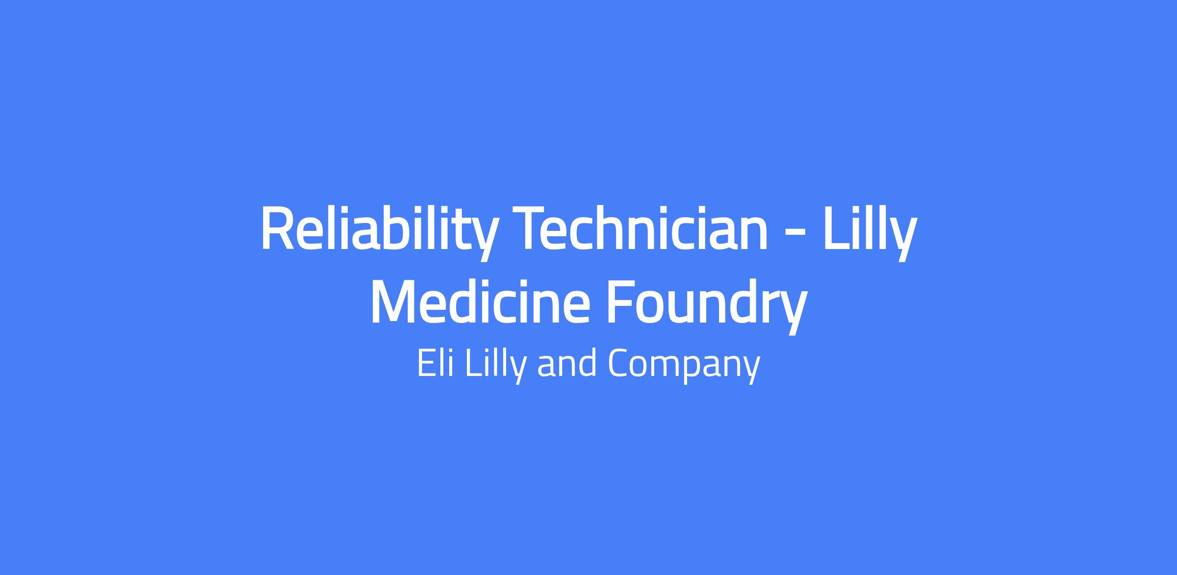 Reliability Engineering Technician (Lilly Medicine Foundry)