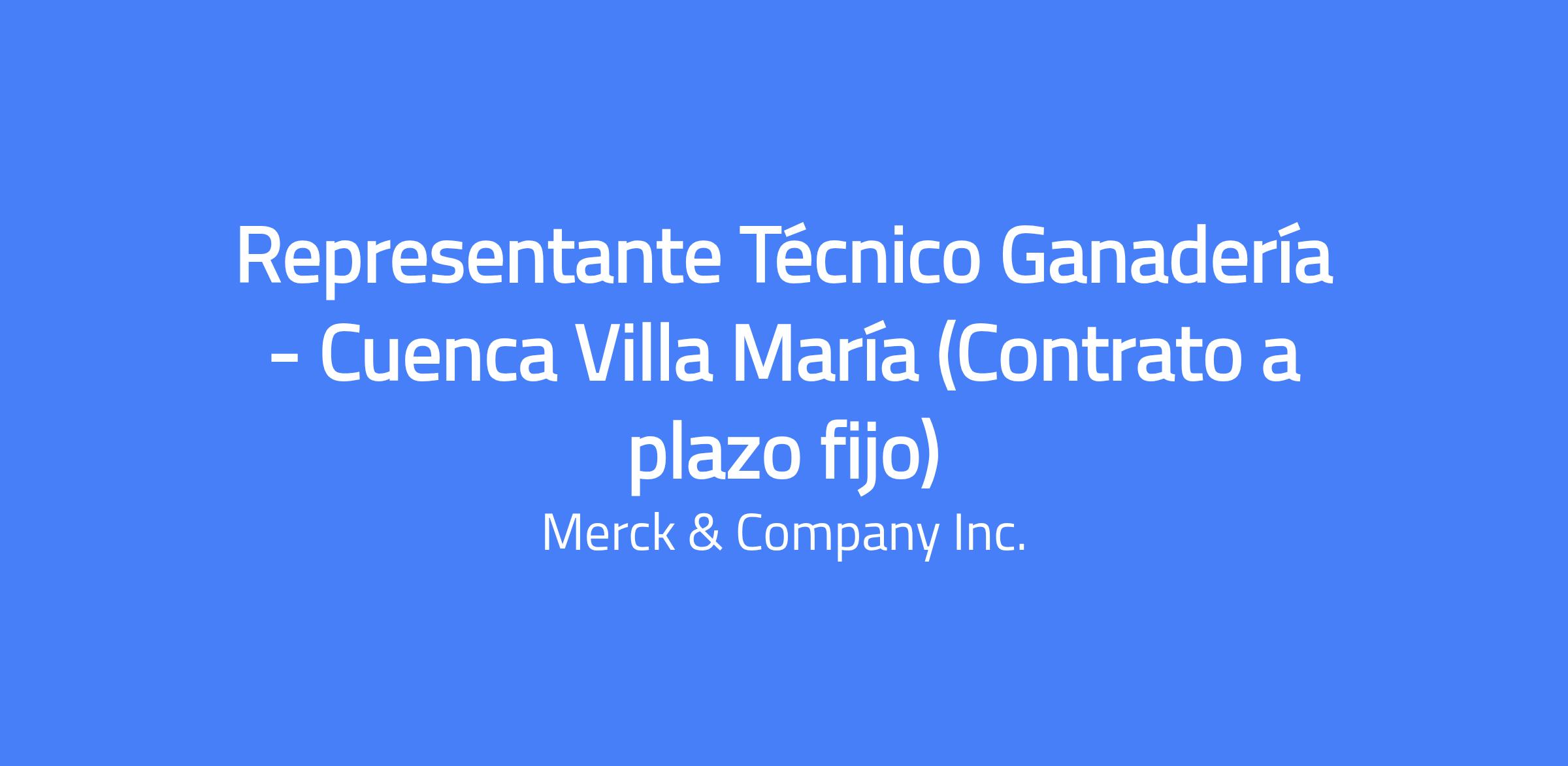 Job Description El objetivo de la posición será generar la demanda de los productos de la Unidad de Negocios de GanaderÃa con foco en la plataforma de biológicos y antiparasitarios, a nivel de la cadena comercial y de usuarios finales, junto con implementar en la zona de responsabilidad, las estrategias comerciales de manera correcta, lo cual permitirá asegurar el cumplimiento de los objetivos de venta. Responsabilidades Mantener un conocimiento profundo de nuestro portafolio de productos y de sus competidores. Desarrollar el negocio en su zona de responsabilidad y la adecuada planificación para ello. Plantear tácticas y acciones estratégicas para su territorio. Implementar y dar seguimiento a su plan de trabajo en su territorio, analizando constantemente las oportunidades del negocio. Realizar una venta consultiva con una adecuada planificación, preparación, ejecución y seguimiento post venta. Realizar entrenamientos de actualización a médicos veterinarios, productores y al canal comercial. Realizar una adecuada segmentación de los clientes actuales y potenciales. Identificar e interactuar con los principales lÃderes de opinión e influenciadores de la zona de responsabilidad. Cumplir con los requerimientos de Compliance, Farmacovigilancia y todas las polÃticas internas de la compañÃa. Requerimientos del Cargo Profesional graduado en Medicina Veterinaria Experiencia: Al menos 2 años de experiencia en sistemas de producción bovina y en posiciones similares. Con conocimientos de producción lechera. Zona de residencia: Cuenca del Villa MarÃa Carnet de conducir vigente Disponibilidad para Viajar: 75% tiempo. Required Skills: Account Management, Adaptability, Customer Experience Design, Customer Experience Management, Customer Management, Inbound Phone Sales, Industry Knowledge, Interpersonal Relationships, Lead Generation, Management Process, Market Analysis, Product Knowledge, Sales Forecasting, Sales Goal Achievement, Sales Management, Sales Presentations, Sales Reporting, Sales Strategy Development, Sales Training, Technical Product Sales Preferred Skills: Current Employees apply HERE Current Contingent Workers apply HERE Search Firm Representatives Please Read Carefully Merck & Co., Inc., Rahway, NJ, USA, also known as Merck Sharp & Dohme LLC, Rahway, NJ, USA, does not accept unsolicited assistance from search firms for employment opportunities. All CVs / resumes submitted by search firms to any employee at our company without a valid written search agreement in place for this position will be deemed the sole property of our company. No fee will be paid in the event a candidate is hired by our company as a result of an agency referral where no pre-existing agreement is in place. Where agency agreements are in place, introductions are position specific. Please, no phone calls or emails. Employee Status: Temporary (Fixed Term) Relocation: No relocation VISA Sponsorship: No Travel Requirements: 75% Flexible Work Arrangements: Hybrid Shift: Not Indicated Valid Driving License: No Hazardous Material(s): no Job Posting End Date: 04/19/2026 *A job posting is effective until 11:59:59PM on the day BEFORE the listed job posting end date. Please ensure you apply to a job posting no later than the day BEFORE the job posting end date. Our company is a global health care leader with a diversified portfolio of prescription medicines, vaccines and animal health products. The difference between potential and achievement lies in the spark that fuels innovation and inventiveness; this is the space where we have codified our legacy for over a century. Our success is backed by ethical integrity, forward momentum, and an inspiring mission to achieve new milestones in global healthcare.