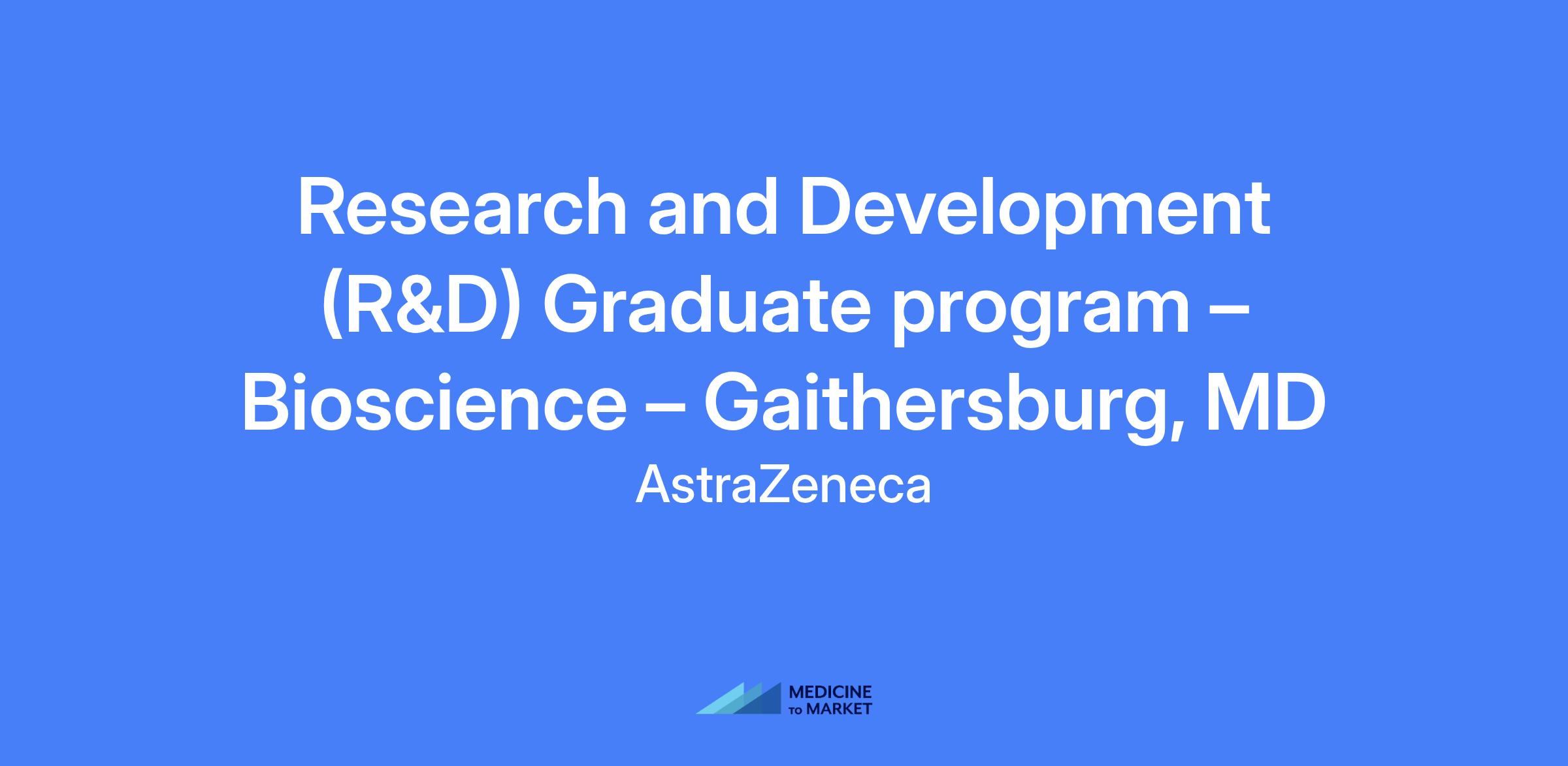 Research and Development (R&D) Bioscience Graduate Program at AstraZeneca in Gaithersburg, MD. Two-year program with three eight-month placements across drug discovery and development, offering mentorship and hands-on experience in diverse R&D projects.