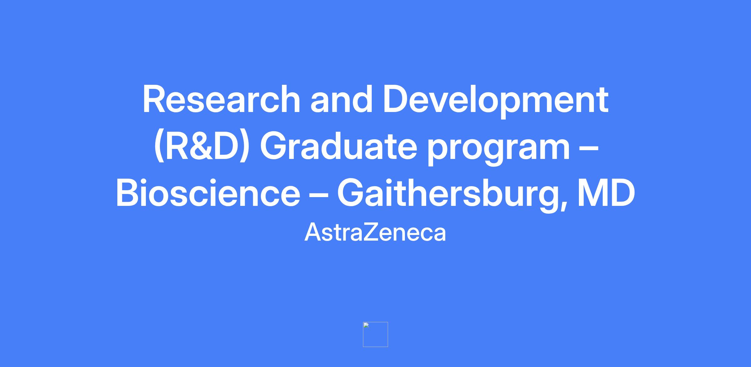 Research and Development (R&D) Bioscience Graduate Program at AstraZeneca in Gaithersburg, MD. Two-year program with three eight-month placements across drug discovery and development, offering mentorship and hands-on experience in diverse R&D projects.