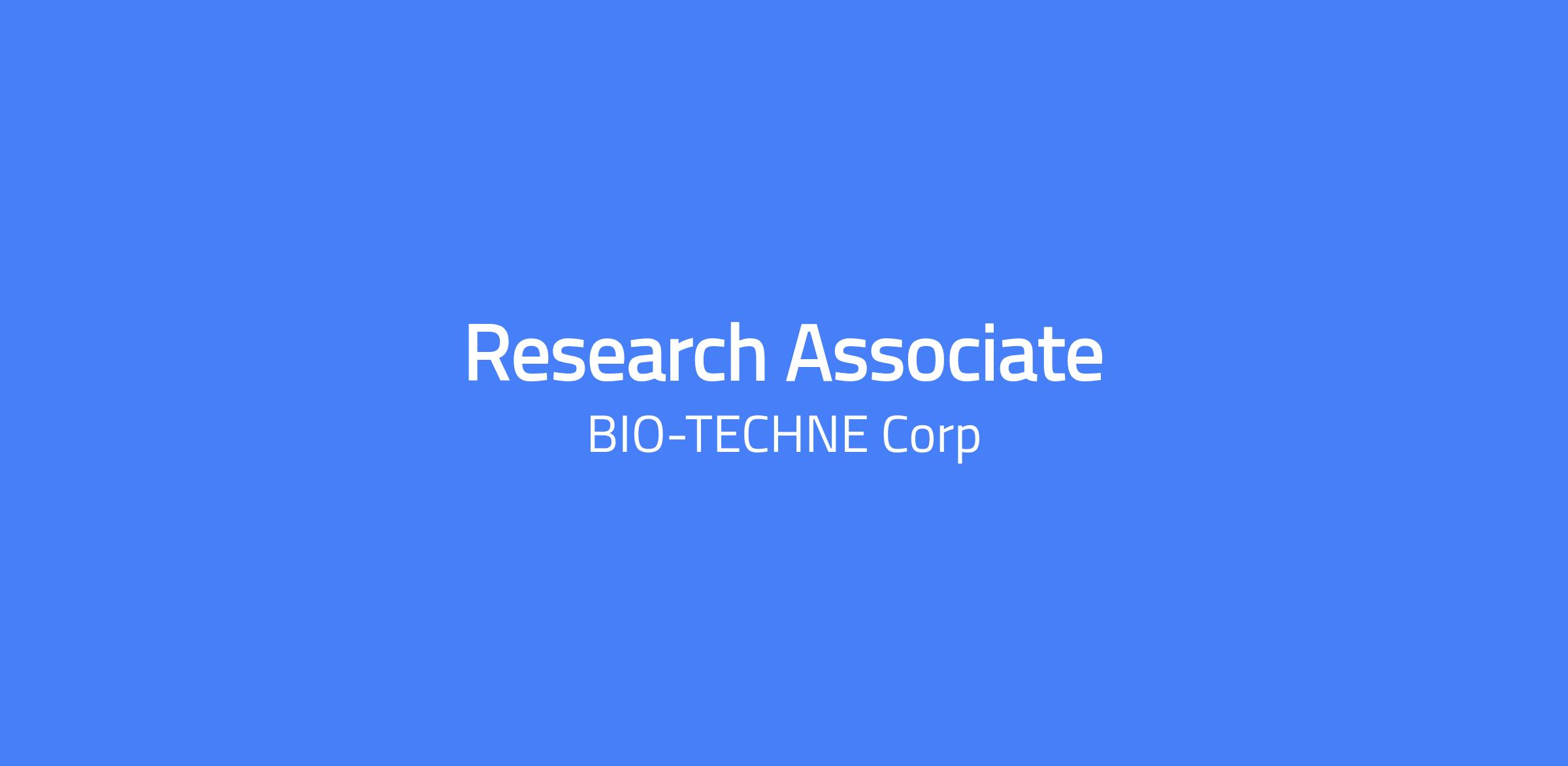 By joining Bio-Techne, youâll join a company with a powerful and positive purpose of enabling cutting-edge research in Life Sciences and Clinical Diagnostics. Bio-Techne, and all of its brands, provides tools for researchers to further treat and prevent disease worldwide. Pay Range: $40,300.00 - $66,250.00 Research Associate (Luminex Operations) By joining the Bio-Techne team, you will have an impact on future cutting-edge research. Bio-Techne and its brands provide tools for researchers in Life Sciences and Clinical Diagnostics. Position Summary: Bio-Techneâs Luminex Operations manufactures made-to-order Luminex Multiplexing Assays that allow researchers to perform studies on a variety of different diseases that are critical for drug discoveries and clinical studies. As an Advanced Research Associate in Luminex Operations, you will be responsible for supporting manufacturing processes within various Luminex made-to-order assay platforms and to ensure quick product turnaround, high quality, and customer satisfaction. This is an exempt position. Key Responsibilities: Formulate microparticle and biotin cocktails for made-to-order Luminex multiplex assays according to established SOPs. Perform qualification of Luminex assay components including microparticles and biotins stocks. Troubleshooting of non-confirming Luminex assays with increasing independence and complexity. Draft change plans and non-conformance reports as required. Perform routine equipment maintenance, assist with new equipment onboarding, and assist with troubleshooting equipment issues. Manage information and data in batch records, spreadsheets, computer databases, paper documentation, etc. Assist with SOP and document revision. Follow guidelines for company safety, quality, training procedures, and regulation policies. Perform additional duties as assigned. Education and Experience: Bachelorâs degree in Biological Sciences or equivalent required with 0-2 years of laboratory experience. Experience with small volume pipetting is highly desired. Knowledge, Skills, and Abilities: Knowledge of laboratory equipment (e.g. pipettes, centrifuge, computers, etc.) Ability to handle complex and repetitive tasks. Proficiency with Microsoft Office with emphasis on Excel. Capability to work in a fast-faced environment with shifting priorities and deadlines. Ability to plan, organize and multi-task to complete assignments in an efficient manner. Ability to pay attention to details and perform at a high-level accuracy. Proficiency in professional communication, both orally and in writing. Perform work independently on routine assignments or projects and work with a team. Why Join Bio-Techne: We offer competitive insurance benefits starting on day one: medical, dental, vision, life, short-term disability, long-term disability, pet, and legal and ID shield. We invest in our employeesâ financial futures through 401k plans, an employee stock purchase plan (ESPP), Health Saving Account (HSA), Flexible Spending Account (FSA), and Dependent Care FSA. We empower our employees develop their careers through mentorship, promotional opportunities, training and development, tuition reimbursement, internship programs, and more. We offer employee resource groups, volunteer paid time off, employee events, and charity drives to build a culture of caring and belonging. We offer an accrued leave policy with paid holidays, paid time off, and paid parental leave. We foster a culture of empowerment and innovation, where employees feel valued and encouraged to bring their new ideas to the table. Bio-Techne is an E-Verify Employer in the United States. All qualified applicants will receive consideration for employment without regard to race, color, religion, sex, sexual orientation, gender identity, national origin, disability, or status as a protected veteran. To protect the interests of all, Bio-Techne will not accept unsolicited resumes from any source other than a candidate application. Any unsolicited resumes sent to Bio-Techne will be considered Bio-Techne property. Bio-Techne empowers researchers in Life Science and Clinical Diagnostics by providing high-quality reagents, instruments, custom manufacturing, and testing services. Our family of brands creates a unique portfolio of products and services. Science is our passion; it drives us to collaborate, develop, and manufacture award-winning tools that help researchers achieve reproducible and consistent results.