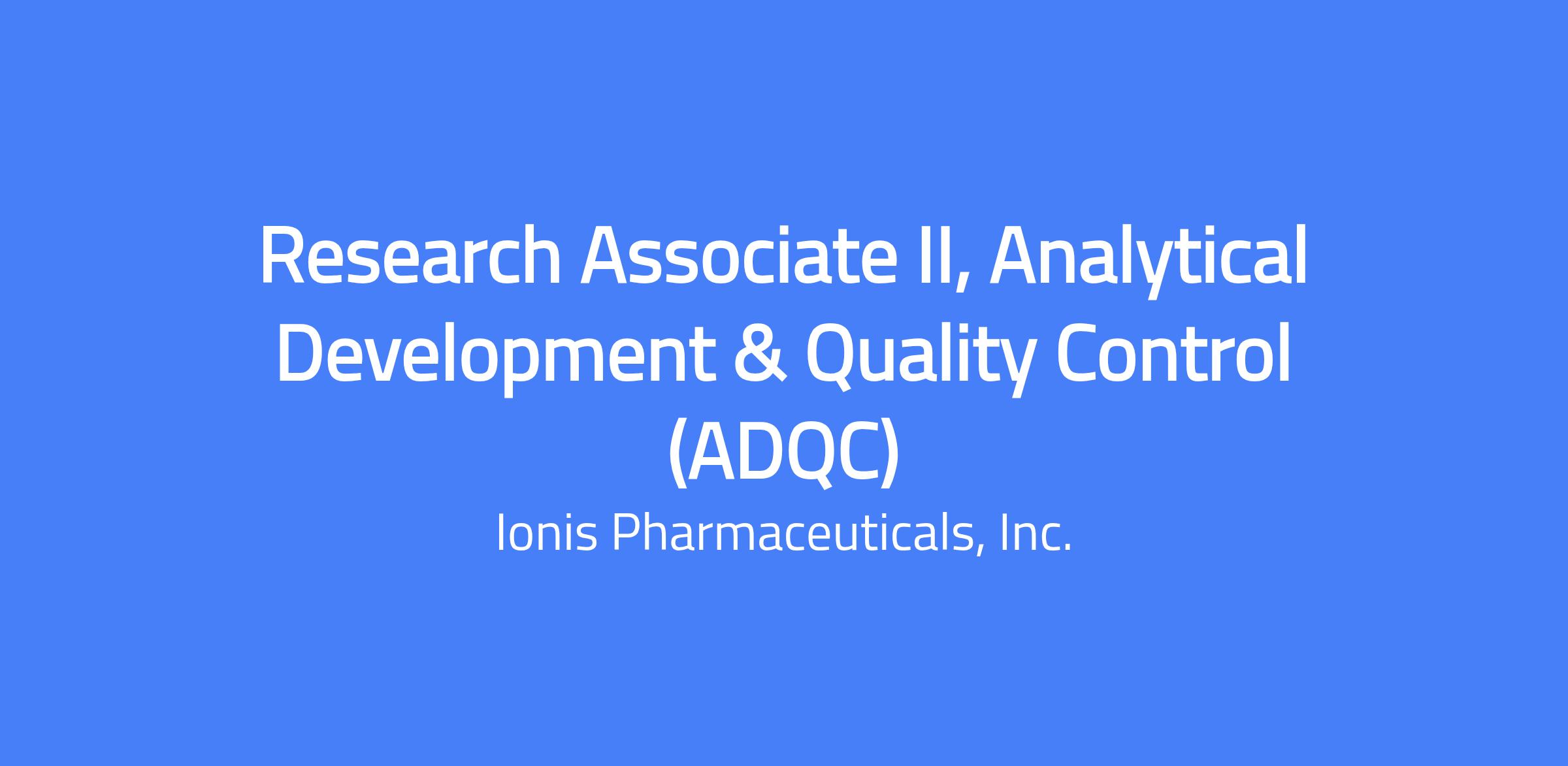 Seeking an experienced analytical chemist to join the Analytical Development & Quality Control (ADQC) group at the Research Associate II level. The ideal candidate will be familiar with HPLC and other chemistry techniques, possess a strong work ethic and solid technical background, demonstrate excellent oral and written communication skills, and have experience working in a GMP environment. The successful candidate will perform the following responsibilities with a high degree of independence and attention to detail.