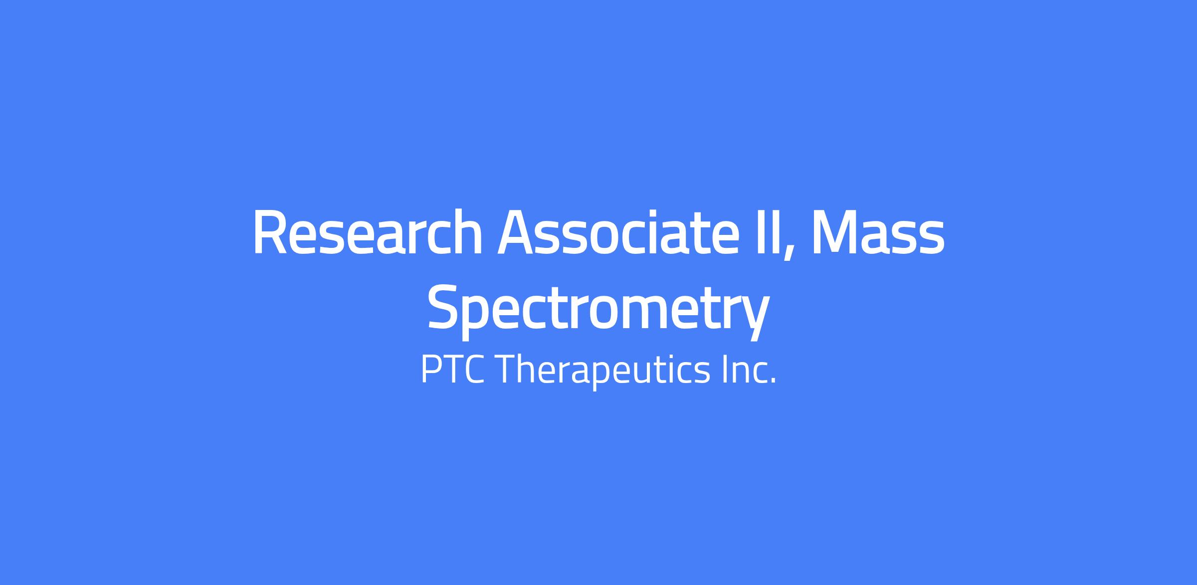 PTC Therapeutics is a global commercial biopharmaceutical company. For over 25 years our team has been deeply committed to a unified purpose: Extending lifeâs moments for children and adults living with a rare disease. At PTC, we cultivate an inclusive culture where everyone feels valued, respected, and empowered. We welcome candidates from all backgrounds to join our team, fostering a strong sense of belonging. Visit our website to learn more about our company and culture! Site: www.ptcbio.com Job Description Summary: PTC Therapeutics is seeking an enthusiastic associate to join our Multiomics team in Mountain View, CA. The successful candidate will join a diverse team employing cutting edge tools to investigate the roles of ferroptosis, inflammation, and metabolism in both rare and pediatric disorders. The Multiomics team is looking for someone who is: organized, detail-oriented, energetic, and a self-starter. The ideal candidate will provide hands-on support in a technically advanced, fast-paced laboratory environment, with a strong commitment to accuracy, precision, and the timely execution of tasks. The Research Associate II will execute, analyze, and report experimental results to their supervisor and the broader Multiomics group. This position will adhere to relevant regulatory requirements and company Standard Operating Procedures (SOPs) as appropriate. . Job Description: ESSENTIAL FUNCTIONS Primary duties/responsibilities: Operates, maintains, and troubleshoots laboratory equipment (e.g. LC-MS/MS, ELISA, liquid handlers). Execute sample preparation and enrichment protocols for multiple sample types (e.g. plasma, CSF, tissues, and cells) to enable downstream multiomic analyses. Prepares buffers, stocks, and standards according to SOPâs to perform routine system suitability checks. Analyzes data, QCâs peer data, documents results, and presents findings to the Multiomics team. Tracks daily progress in Agile software to provide real-time updates for project stakeholders. Abides by all safety and regulatory guidelines. Maintains a detailed laboratory notebook. Demonstrates compliance with corporate, department, and job-specific requirements. Performs other tasks and assignments as needed and specified by management. KNOWLEDGE/SKILLS/ABILITIES REQUIRED 1 â 3 years of hands-on laboratory experience, with a strong preference for prior LC-MS/MS experience. Proficient with standard laboratory equipment (e.g. pipettes, centrifuges, balances, and homogenizers). Experience operating and troubleshooting analytical instrumentation. Prior use of sample preparation techniques for the extraction and quantitation of small molecules, peptides, or proteins from biofluids and tissues. Familiarity with bioanalytical software applications (e.g. Analyst, Excel, or Prism). Detail-oriented worker with superb organizational and time management skills. Excellent communicator with a positive attitude. Ability to multitask and respond quickly to shifting priorities while adhering to project timelines * Minimum level of education and years of relevant work experience. B.S. degree in analytical chemistry, biochemistry, or a related field with at least 1-2 years of experience. *Special knowledge or skills and/or licenses or certificates preferred. Familiarity with sample processing for downstream proteomics or biomarker analysis is preferred. Prior experience with liquid robotic handlers is a plus. * Travel requirements Up to 10% Office/Laboratory based position Expected Base Salary Range: $82,500 - $98,000. The base salary offered will be contingent on the assessment of the candidate's education level, background, and experience relative to the requirements of the position they are being considered for, as well as a review of internal equity. In addition to base salary, PTC employees are also eligible for short- and long-term incentives. All eligible employees may also enroll in PTCâs medical, dental, vision, and retirement savings plans. EEO Statement: PTC Therapeutics is an equal opportunity employer. We welcome applications from all individuals, regardless of race, color, national origin, gender, age, physical characteristics, social origin, disability, religion, family status, pregnancy, sexual orientation, gender identity, gender expression, disability, veteran status or any unlawful criterion under applicable law. We are committed to treating all applicants fairly and avoiding discrimination. Click here to return to the careers page About Us PTC Therapeutics is a global biopharmaceutical company dedicated to the discovery, development and commercialization of clinically differentiated medicines for children and adults living with rare disorders. PTC is advancing a robust and diversified pipeline of transformative medicines as part of its mission to provide access to best-in-class treatments for patients with unmet medical needs. Our strategy is to leverage our scientific expertise and global commercial infrastructure to optimize value for patients and other stakeholders. To learn more about PTC, please visit www.ptcbio.com and follow us on LinkedIn, X, Instagram and Facebook. Please Beware of False Job Advertisements PTC Therapeutics is aware of employment hiring scams that make false use of our company, leader and employee names to defraud job seekers. PTC does not make job offers without interviews and we never ask candidates for money. If you have encountered a job posting or been approached with a job offer from an email address that does not use ptcbio.com, or that you feel may be fraudulent, we strongly encourage you NOT to respond.