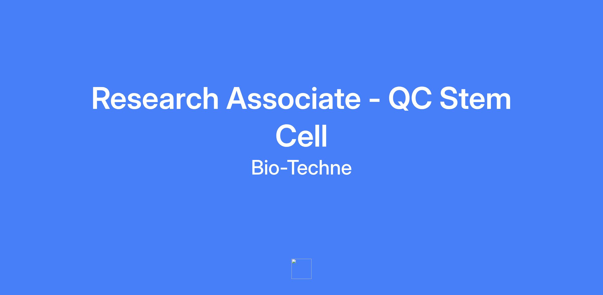 Research Associate - QC Stem Cell. Perform routine quality control testing of stem cell products using protocol-defined assays to demonstrate their activity. This includes culturing and handling stem cells, primary cells, and basic cell lines for flow cytometry and immunocytochemistry (ICC). GMP documentation and workflow are required. Basic lab support including instrument maintenance, reagent preparation, and QC antibody testing using western blot, Simple Wes, and immunohistochemistry.