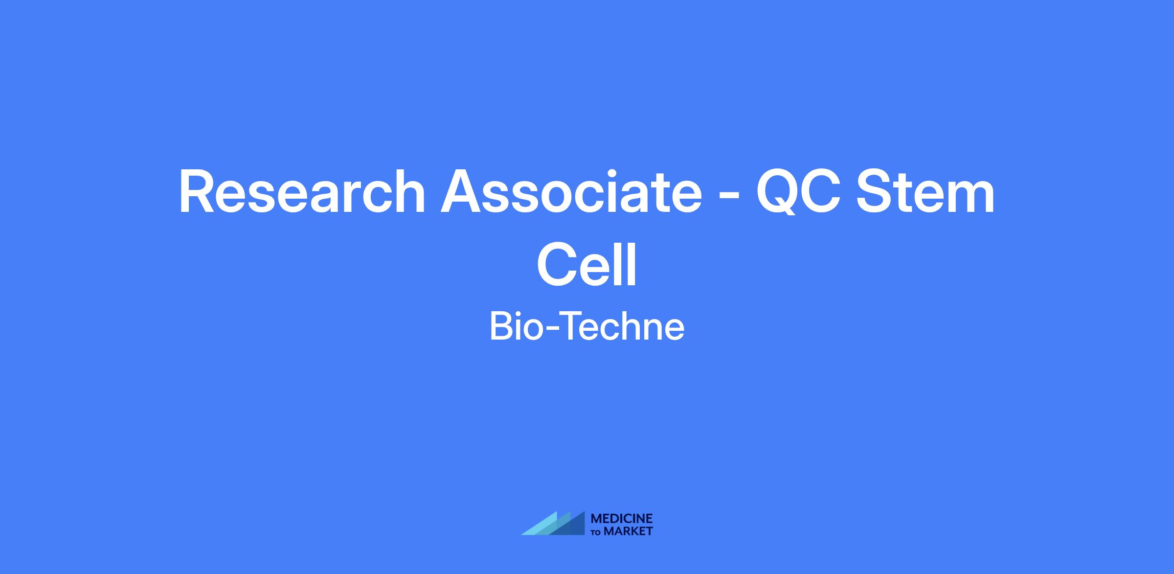 Research Associate - QC Stem Cell. Perform routine quality control testing of stem cell products using protocol-defined assays to demonstrate their activity. This includes culturing and handling stem cells, primary cells, and basic cell lines for flow cytometry and immunocytochemistry (ICC). GMP documentation and workflow are required. Basic lab support including instrument maintenance, reagent preparation, and QC antibody testing using western blot, Simple Wes, and immunohistochemistry.