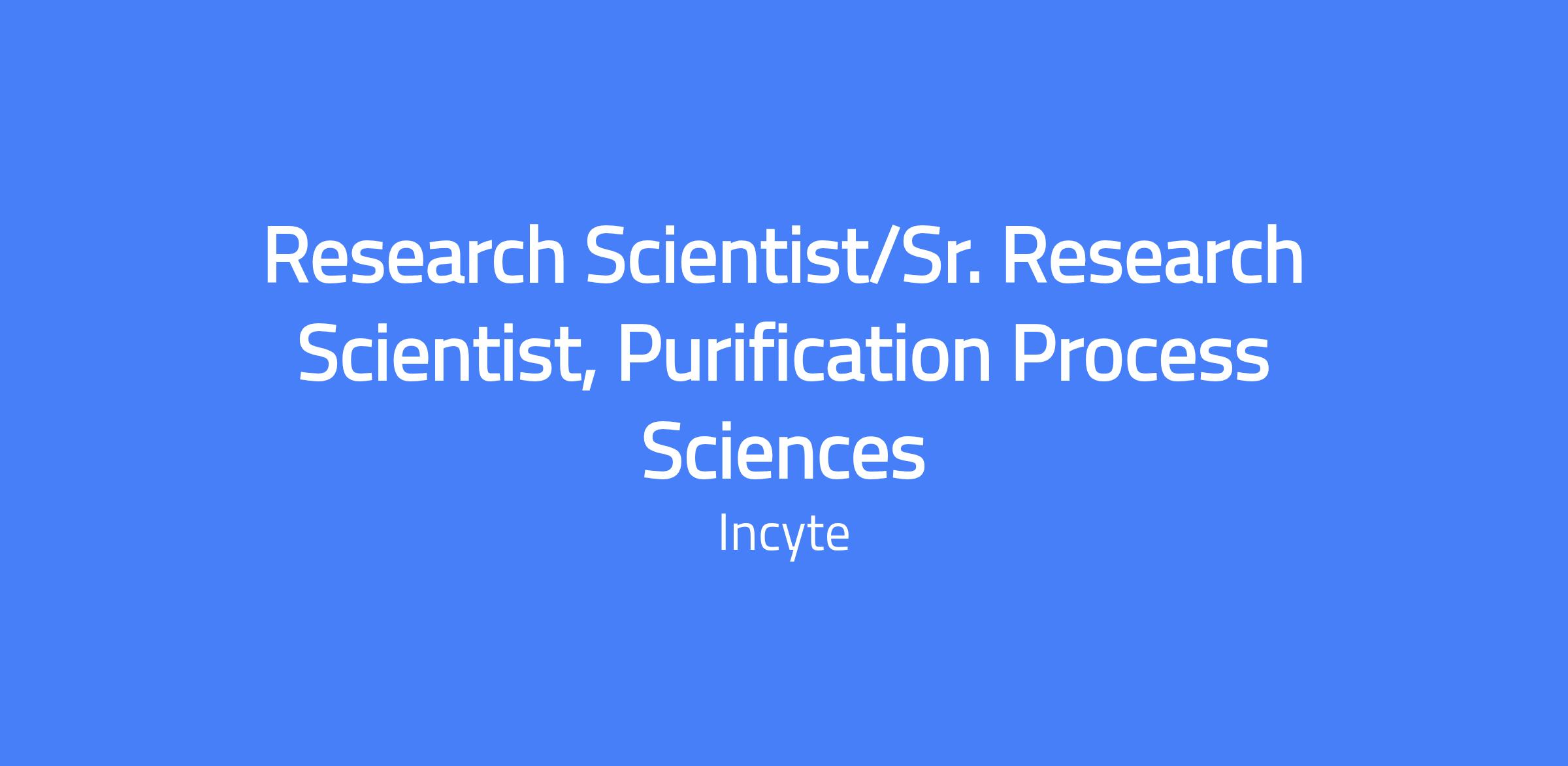 Research Scientist/Sr. Research Scientist, Purification Process Sciences