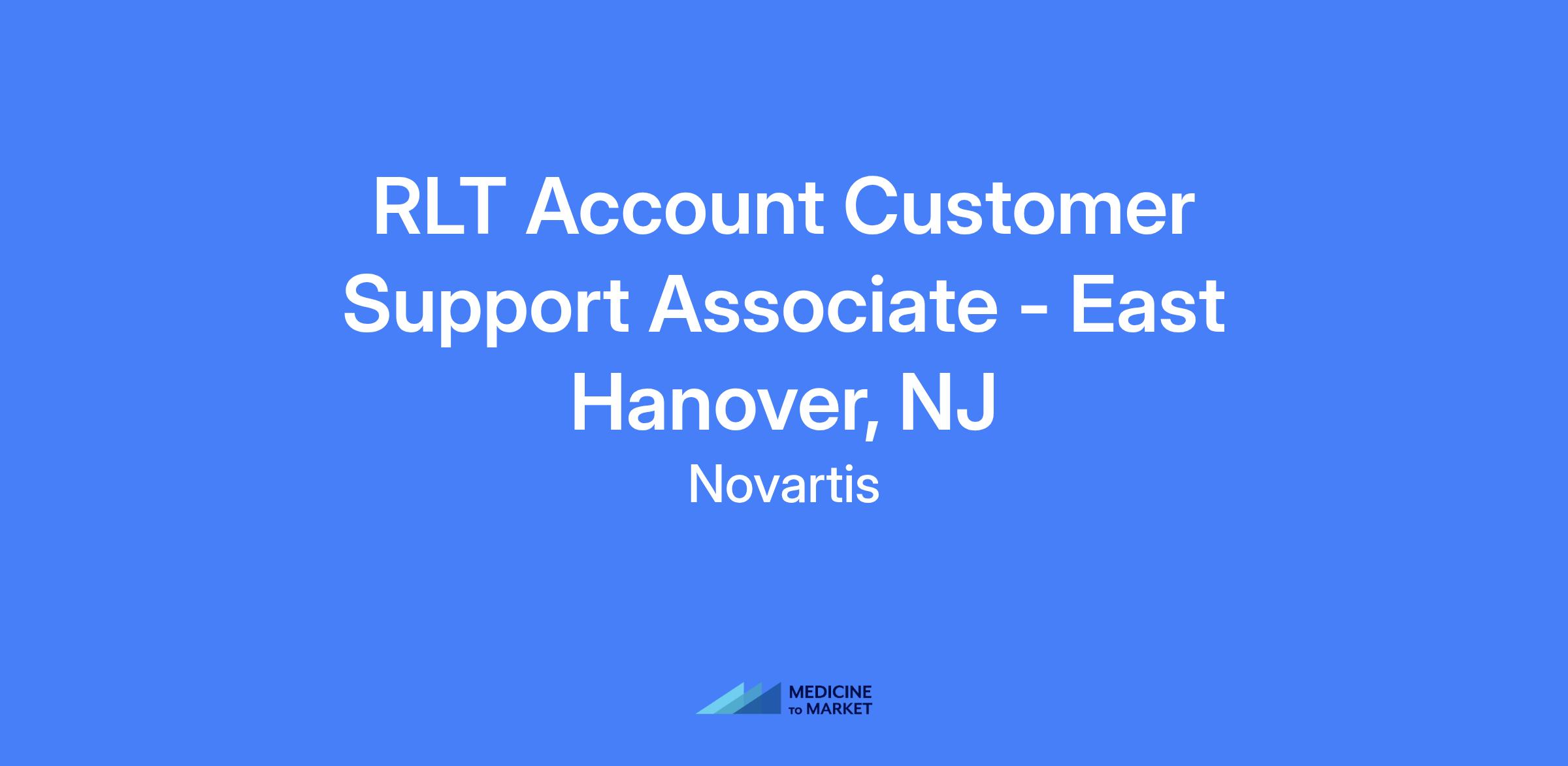 RLT Account Customer Support Associate based in East Hanover, NJ. The role involves completing customer support activities including product administration scheduling, order management and delivery for Radioligand therapies, primarily via phone and email. Shift is 7:30 AM to 4:00 PM.