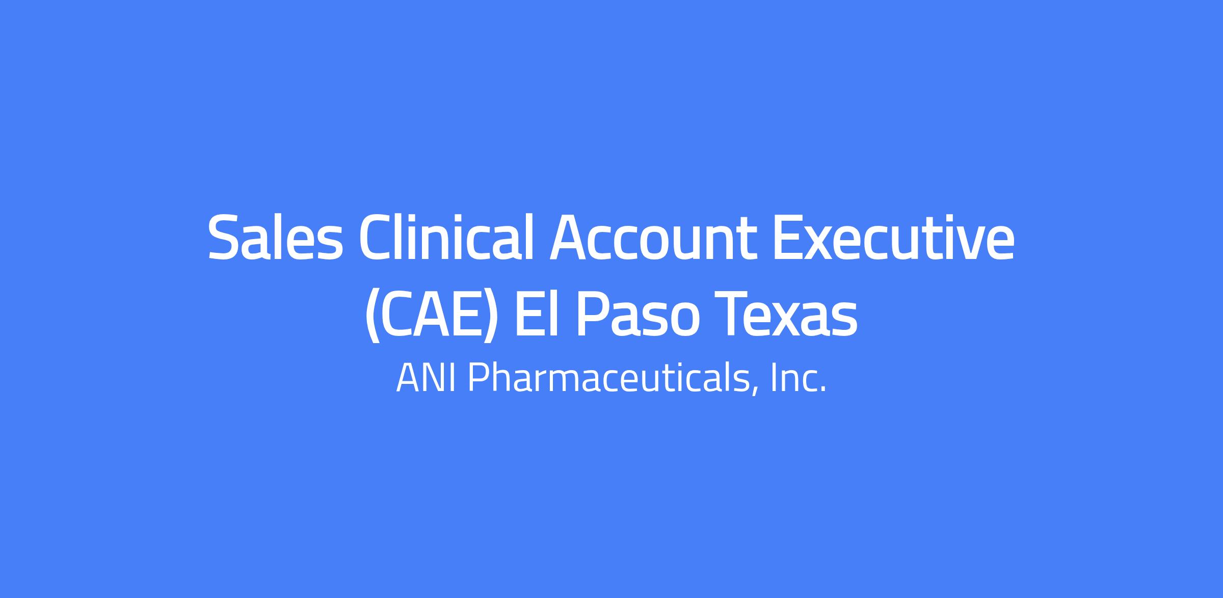 The Clinical Account Executive (CAE) will report to the Rare Disease Commercial Team at ANI. The role requires performance-driven individuals with strategic problem-solving skills and strong business acumen, able to collaborate with multiple stakeholders. Ideal candidates will have sales experience in rare disease or in neurology, nephrology, or rheumatology, with a track record of market growth and drug launches in competitive spaces. The territory includes El Paso, TX and New Mexico.