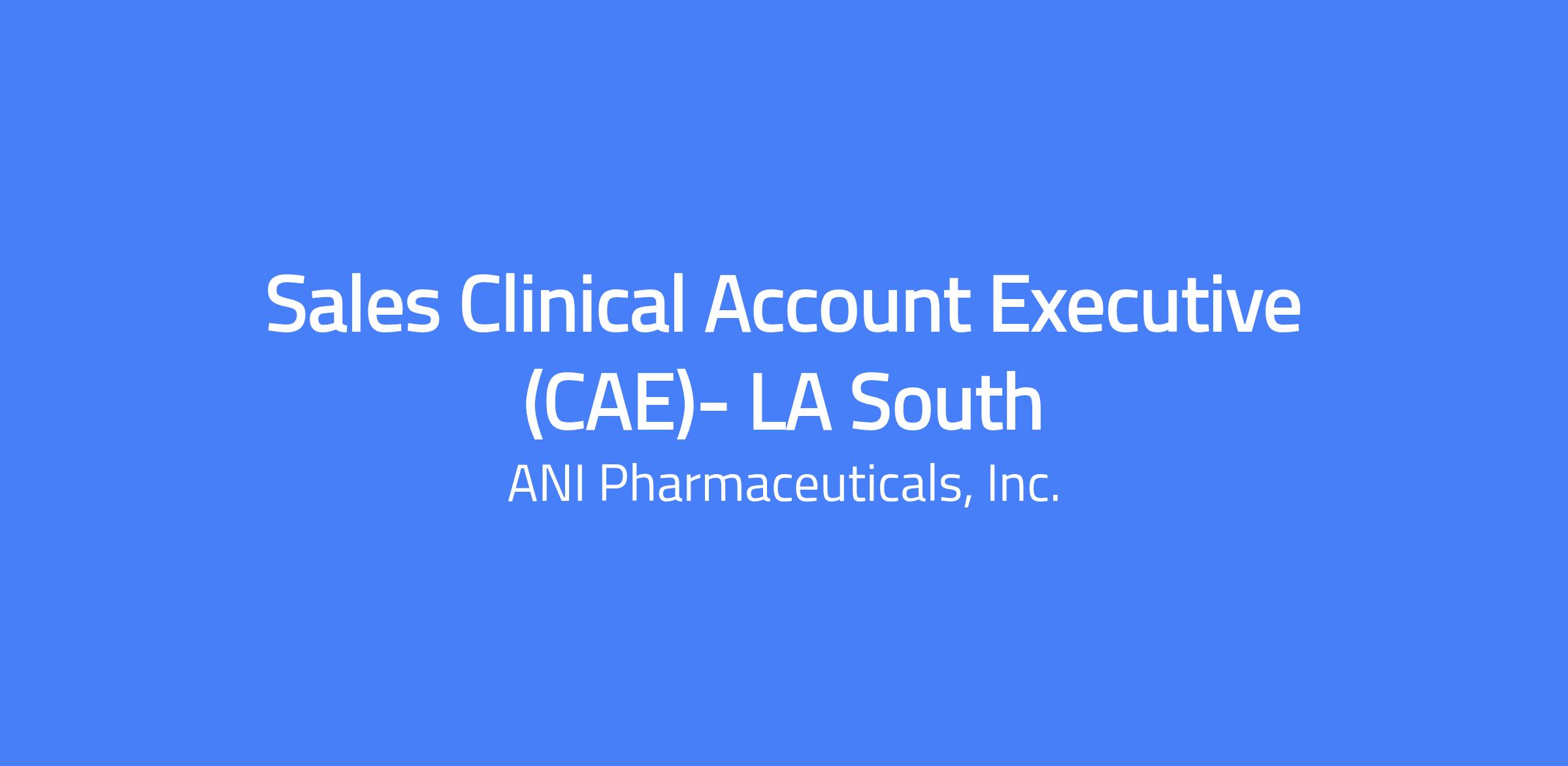 The Clinical Account Executive (CAE) will report into the Commercial - Rare Disease Team at ANI. The role requires performance-driven individuals with strategic problem-solving skills and high business acumen who can collaborate with multiple stakeholders. The ideal candidate has sales experience in rare disease or in neurology, nephrology, or rheumatology, and experience launching a drug in a competitive space with a track record of market growth. The territory includes LA South and surrounding areas. The CAE will drive physician and patient identification, market development, and disease/brand awareness for Cortrophin Gel within the assigned territory, maintaining knowledge of targeted disease states and product labeling to achieve territory sales targets and business objectives through account-specific strategies.