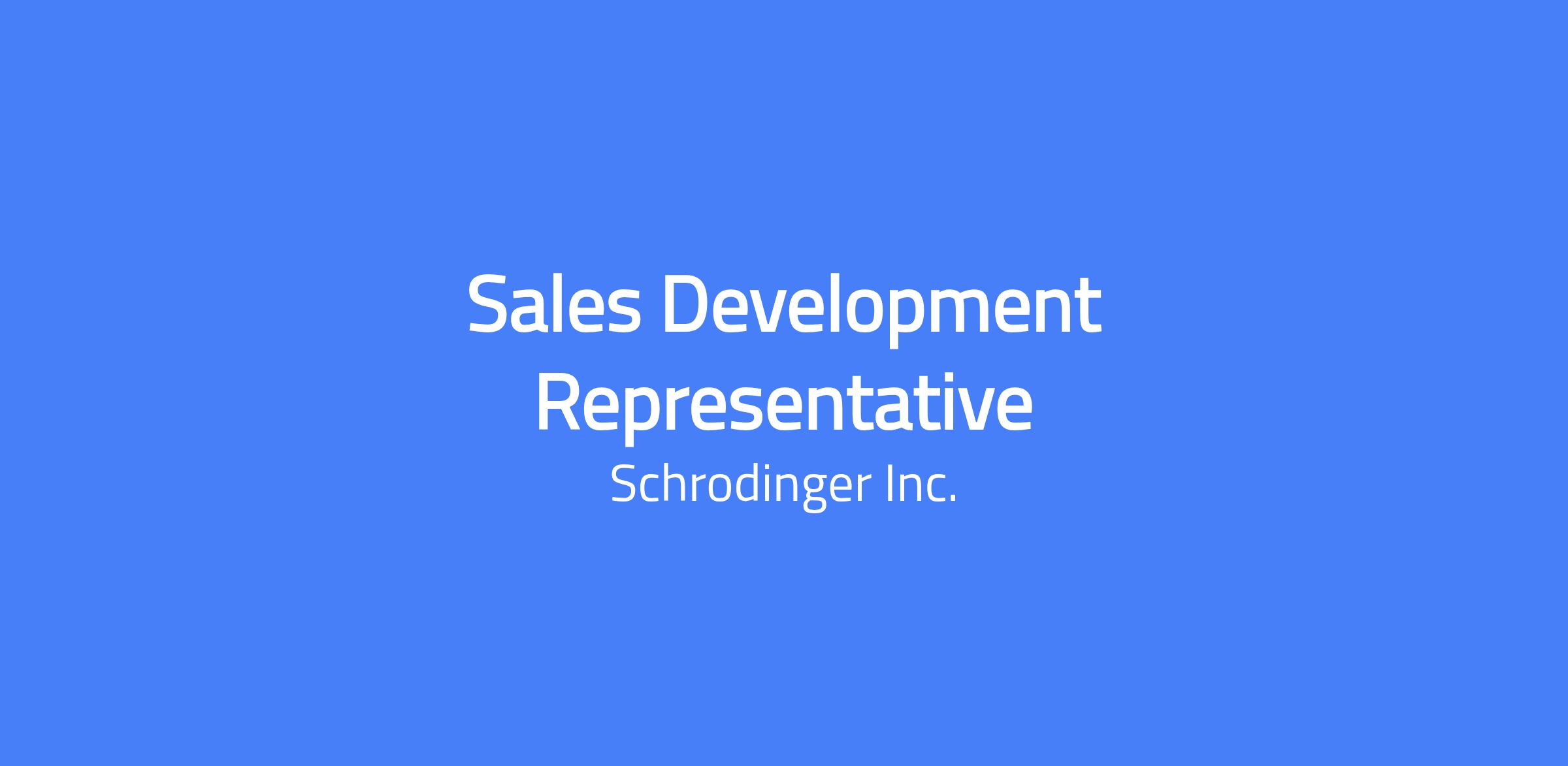 Schrödinger, a leader in computational chemistry software and services for preclinical drug discovery, is seeking an ambitious, highly driven, and goal-oriented Sales Development Representative to join us in our mission to improve human health and quality of life through the development, distribution, and application of advanced computational methods.