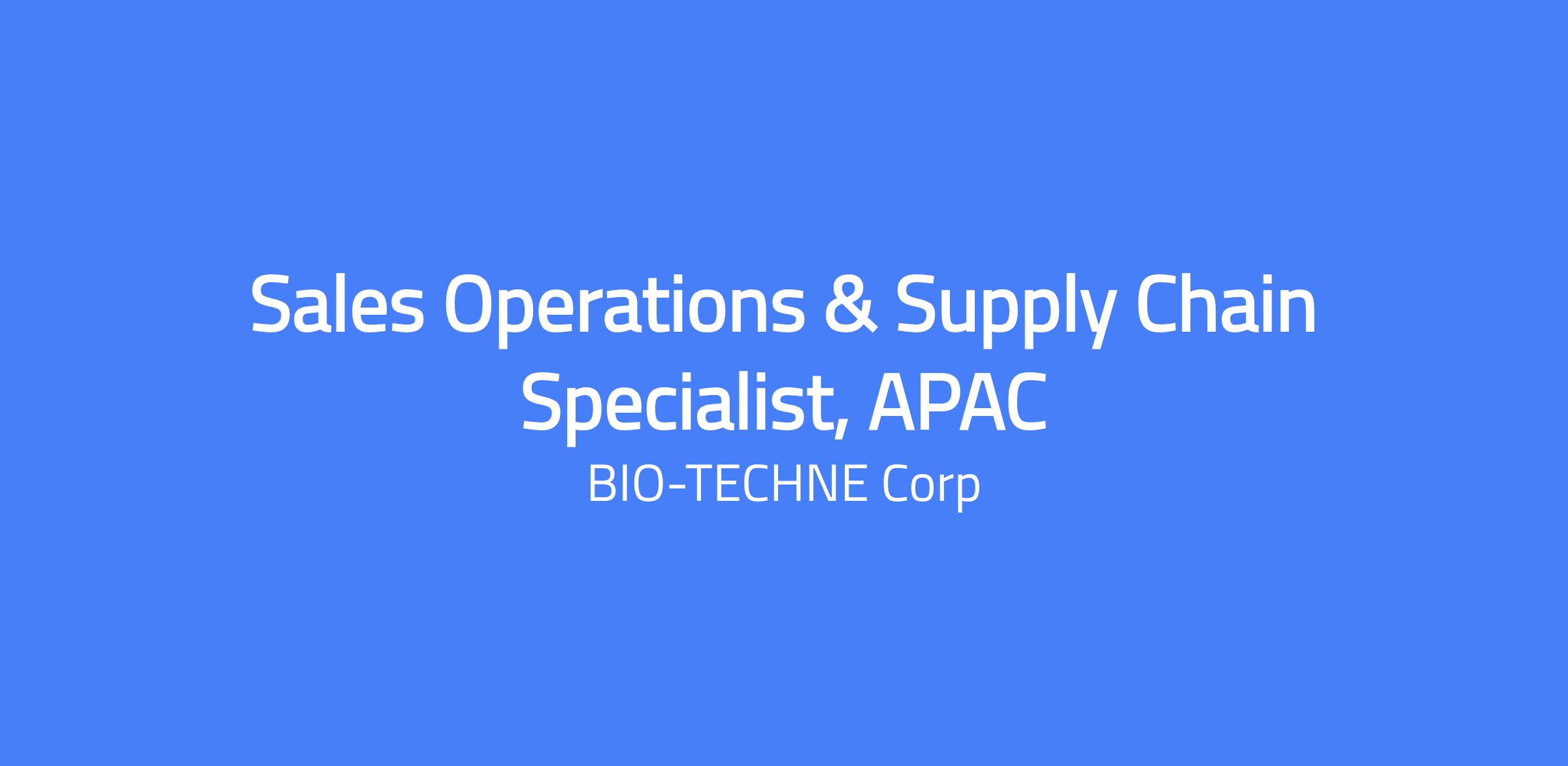 By joining Bio-Techne, youâll join a company with a powerful and positive purpose of enabling cutting-edge research in Life Sciences and Clinical Diagnostics. Bio-Techne, and all of its brands, provides tools for researchers to further treat and prevent disease worldwide. Position Overview: The APAC Sales Operations & Supply Chain Specialist is a key role responsible for supporting the sales operations and supply chain management across the Asia-Pacific region. This position will bridge the gap between sales, supply chain, logistics, and internal cross-functional teams (e.g., Finance, Customer Service) to ensure smooth execution of sales operations management, efficient logistics coordination, and compliance with regional regulations. The role will play a critical part in driving operational efficiency, improving customer satisfaction, and supporting the growth of the companyâs product portfolio in the APAC market. The specialist will also be involved in process optimization, data analysis, and cross-regional communication to align APAC operations with global standards. Key Responsibilities: Sales Operations Support: Collaborate closely with the APAC sales team and customers to understand customer requirements, resolve order-related issues (e.g., product availability, delivery delays, documentation errors), and provide operational support for sales activities (e.g., documents preparation, order modification, backorder management). Coordinating with headquarter supply chain and logistics teams to ensure product availability, and providing operational support for APAC sales operation activities (e.g., stock allocation, order prioritization). Supply Chain & Logistics Coordination: Coordinate with global and regional supply chain teams to supply optimized inventory levels in the APAC region, ensuring optimal stock levels to meet sales demand. Oversee the logistics process for shipments in APAC, including coordinating with freight forwarders, customs brokers, and carriers to ensure timely and cost-effective delivery of products to customers. Ensure compliance with regional import/export regulations, customs requirements, and product registration standards in APAC countries to avoid delays or penalties. Manage product documentation (e.g., commercial invoices, packing lists, certificates of origin) to meet regional requirements and ensure smooth customs clearance. Collaborate with the documentation team to resolve any documentation discrepancies. Handle supply chain disruptions (e.g., production delays, shipping issues, customs hold-ups) by coordinating with relevant teams to develop contingency plans and minimize impact on customer orders. Cross-Functional Collaboration & Communication: Communicate with customers regarding order status, delivery updates, and logistics-related issues, providing timely and professional responses to enhance customer satisfaction. Participate in cross-regional meetings (with US headquarters and other regional teams) to share APAC operational updates, and align on global supply chain and sales operations strategies. Process Optimization & Continuous Improvement: Support the implementation of process improvements, including updating SOPs, and monitoring the effectiveness of changes. Participate in root cause analysis for operational issues and implement corrective actions to prevent recurrence. Compliance & Documentation: Ensure compliance with company policies, global supply chain standards, and regional regulations (e.g., import/export controls, data privacy laws, product safety regulations) in all sales operations and supply chain activities. Requirements & Qualifications 1. Education Bachelorâs degree or above in Supply Chain Management, Logistics, Business Administration, International Trade, or a related field. 2. Work Experience 10 years of relevant work experience in sales operations, supply chain management, or logistics, preferably in the healthcare, diagnostic, or life sciences industry. Why Join Bio-Techne: We offer competitive wages along with extensive benefits for employees and their families. We invest in our employeesâ financial futures through retirement programs and an employee stock purchase plan. We help our employees develop their careers through mentorship, promotional opportunities, training and development, internship programs, and more. We offer an international and diverse working environment, enriched by employee resource groups; volunteer and charity events; and employee events that build a culture of caring and belonging. We foster a culture of empowerment and innovation, where employees feel valued and encouraged to bring their new ideas to the table. Bio-Techne is an Equal Opportunity Employer. All qualified applicants will receive consideration for employment without regard to race, color, religion, sex, sexual orientation, gender identity, national origin, disability, or status as a protected veteran. To protect the interests of all, Bio-Techne will not accept unsolicited resumes from any source other than a candidate application. Any unsolicited resumes sent to Bio-Techne will be considered Bio-Techne property. Bio-Techne empowers researchers in Life Science and Clinical Diagnostics by providing high-quality reagents, instruments, custom manufacturing, and testing services. Our family of brands creates a unique portfolio of products and services. Science is our passion; it drives us to collaborate, develop, and manufacture award-winning tools that help researchers achieve reproducible and consistent results.